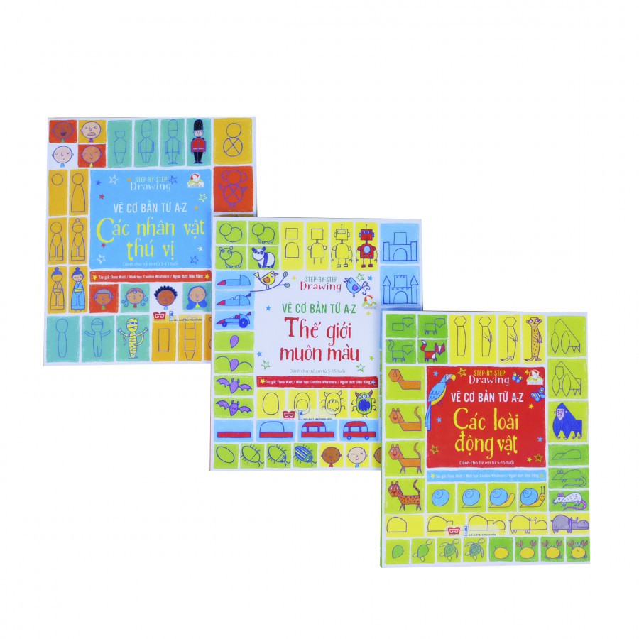 2. Thông tin sách Sách Bộ 3 cuốn – Vẽ cơ bản từ A-Z – Các loài động vật/Các nhân vật thú vị/Thế giới muôn màu