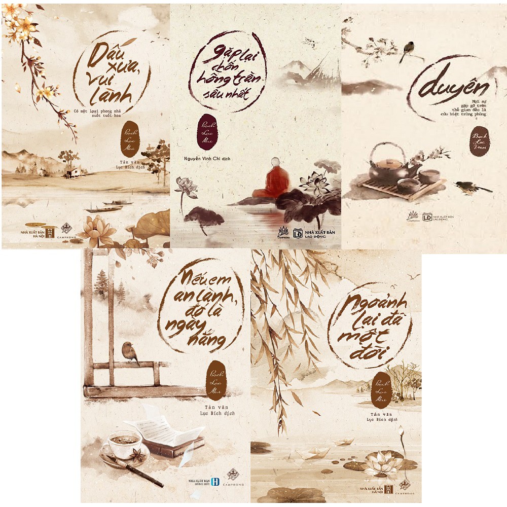 Sách – Bộ 5 Cuốn Của Tác Giả Bạch Lạc Mai ebook pdf review dowload tác giả Bạch Lạc Mai, Danh Mục Sách Văn Học Thương hiệu Bạch Lạc Mai Nhập khẩu/ trong nước Trong nước Kho hàng 18 . 1. Duyên Yêu một người có lẽ chỉ trong chớp mắt, quên một người lại có thể cần cả cuộc đời. Biết rõ như thế, nhưng nhiều người vẫn phải yêu, thậm chí ngàn dặm xa xôi truy tìm tình yêu, muốn kết một đoạn tình duyên trong kiếp này, để tuổi xuân không hối, đời người không tiếc. Có điều tình yêu cần trao ra, cần gánh vác, dù phụ bạc cũng phải nhẫn nhịn, dù phản bội cũng cần khoan dung. Dẫu có một ngày mất đi, dùng thời gian trọn đời để gìn giữ hoài tưởng, cũng sẽ không cảm thấy nặng nề mệt nhọc, tình yêu như vậy, mới được xem là tình yêu chân chính. 2. Gặp Lại Chốn Hồng Trần Sâu Nhất Chúng ta luôn mong mỏi người khác đến cứu rỗi, lại không biết con người chỉ có tự cứu mình rồi mới có thể cứu người. Chúng ta luôn ở trong biển biếc của mình, kể chuyện nương dâu của người ta, lại không biết có một ngày, nương dâu của mình vừa khéo là biển biếc của người khác. Ván cờ nhân sinh này, nếu cố chấp phải đi tiếp theo cách nghĩ của mình, kết quả sẽ là cả ván đều thua, non sông đều mất. Gặp nhau thì sẽ quen nhau Thà rằng không gặp, về sau khỏi buồn Đoạn đành dứt áo đi luôn Để thôi khổ sở mỏi mòn tương tư. “Gặp gỡ trong năm tháng thanh xuân chẳng cần bất cứ ước hẹn nào, ngẫu nhiên đi lướt qua nhau, lơ đãng ngoái nhìn một thoáng đều có thể kết nên một đoạn duyên phận. Chúng ta đều từng có những năm tháng vô cùng tươi đẹp, vì người mình yêu dốc hết tất cả tình cảm mãnh liệt, thao thao thề thốt trước núi cao sông sâu. Tự cho rằng là giống đa tình, sau khi trải qua quá trình quấn quýt, bắt đầu cảm thấy chán ngán, khi đó, nhận ra thề non hẹn biển lúc trước chỉ là một trò chơi của tuổi trẻ. Sống trên đời này, chúng ta phải tuân thủ quy tắc, quy tắc nhân sinh, quy tắc tình yêu, bèo nước gặp nhau định sẵn sẽ là khách qua đường, khi duyên hết chớ nên khổ sở cưỡng cầu.” 3. Năm Tháng Tĩnh Lặng, Kiếp Này Bình Yên Phật ở nơi nao? Giữa chốn đồng không mông quạnh cỏ cây tàn tạ, một ngọn cỏ xanh non là Phật; giữa đêm tuyết im lìm không tiếng động, một chậu than hồng là Phật; giữa sông bể mênh mang vô bờ, một chiếc thuyền con là Phật; giữa sắc màu đan xen rối rắm, đơn sơ là Phật; giữa ngày tháng loạn lạc huyên náo, bình an là Phật. Gặp Phật khi nào? Trong năm tháng đợi chờ hoa nở, giữa phù hoa giữ sự đơn thuần, trong phồn tạp tĩnh tâm dưỡng tính, sẽ có thể gặp Phật. 4. Nếu Em An Lành, Đó Là Ngày Nắng Mỗi một con người đến thế giới này, đều là khách qua đường vội vã. Có những người khi gặp gỡ họ, quay mình là quên; có những người lướt qua họ, buộc phải quay đầu. Tất cả gặp gỡ và ngoái nhìn đều là duyên phận, khi bạn yêu một bóng hình nào đó, luyến lưu một ánh mắt nào đó, có nghĩa là trong tim bạn đã kết một đoạn tình duyên. Chỉ là duyên sâu duyên mỏng, bất cứ ai đều không thể nắm chắc, tụ tan không có lý do, chúng ta đều phải đối đãi bằng cái tâm bình thường. Một người, một quyển sách, một chén trà, một giấc mộng sau rèm. Có lúc, nỗi cô đơn xui khiến lòng người rung động như thế, cũng chỉ có khoảnh khắc này, thế sự mới trở nên phẳng lặng đến vậy. 5. Dấu Xưa, Vui Lành Non nước cỏ cây, trà trong rượu nhạt, đình đài lầu gác, vàng ngọc châu báu, đều có tình ý, chi tiết, có cơ duyên diệu kỳ khó mà diễn tả nổi. Biết làm sao khi sự vật sự việc có đẹp hơn đi chăng nữa, cũng cần người có lòng thưởng thức, thương tiếc nó. Nếu không chỉ là một sự tồn tại giản đơn, ngàn năm cũng như một ngày mà thôi. Phồn hoa trên đời khiến người ta say đắm ưa thích, yêu đến nỗi chẳng muốn rời tay, nhưng lại nhỏ bé tựa như hạt bụi, không thể trường tồn. Nhưng một kiếp một đời mênh mông này, rốt cuộc vẫn có điều mong cầu, hoặc là công danh lẫy lừng, hoặc là hoa mai cắm bình cùng gió mát. Nhân lúc tuổi hoa, bẻ vài cành hoa dại, thưởng mấy chén rượu thơ, điền vài câu tiểu lệnh, giãi bày dăm ba tâm sự, như thế, chẳng phụ nhân gian như gấm thêu. THÔNG TIN CHI TIẾT Công ty phát hành ZGROUP Ngày xuất bản 10-2018 Kích thước 13 x19 cm Loại bìa Bìa mềm Tác giả Bạch Lạc Mai Nhà xuất bản Nhà Xuất Bản Hà Nội