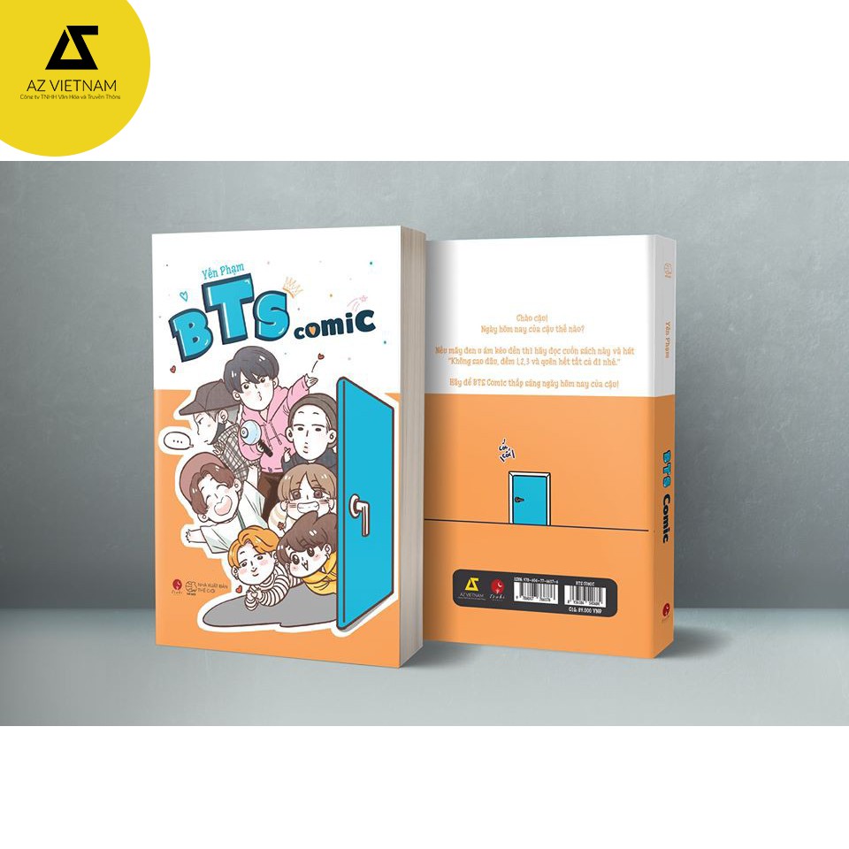 TÊN SÁCH BTS COMIC ISBN 978 604 77 6637 6 Mã Công ty 8 936186 540684 Công ty phát hành Tsuki Books Nhà xuất bản NXB Thế Giới Kích thước 13 x 19 cm Tác giả Yến Phạm Loại bìa Bìa mềm có tay gấp Số trang 176 trang, in màu Ngày xuất bản Dự kiến 9/2019 Giá bìa 89 000 VND BTS Comic: Chào cậu! Ngày hôm nay của cậu thế nào? Nếu mây đen u ám kéo đến thì hãy đọc cuốn sách này và hát “Không sao đâu, đếm 1,2,3 và quên hết tất cả đi nhé!” Hãy để BTS Comic thắp sáng ngày hôm nay của cậu!