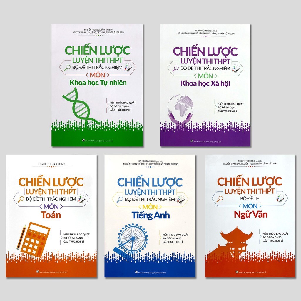 Chiến lược luyện thi THPT – Bộ đề thi trắc nghiệm Gồm 5 cuốn sau – Chiến lược luyện thi THPT – Bộ đề thi trắc nghiệm môn khoa học tự nhiên – Chiến lược luyện thi THPT – Bộ đề thi trắc nghiệm môn khoa học xã hội – Chiến lược luyện thi THPT – Bộ đề thi trắc nghiệm môn toán – Chiến lược luyện thi THPT – Bộ đề thi trắc nghiệm môn anh – Chiến lược luyện thi THPT – Bộ đề thi trắc nghiệm ngữ văn Chiến lược luyện thi THPT – Bộ đề thi trắc nghiệm bao gồm 5 cuốn tương ứng với các môn: Toán, Ngữ văn, Tiếng Anh, Khoa học tự nhiên (Vật lí, Hóa học, Sinh học), Khoa học xã hội (Địa lí, Lịch sử, Giáo dục công dân). Bộ sách được biên soạn, tuyển chọn với nội dung bám sát và bao quát toàn bộ kiến thức trong chương trình thi THPT. Nội dung bộ sách tập trung hướng dẫn học sinh ôn tập những kiến thức, kĩ năng cụ thể khi làm bài thi trắc nghiệm, kèm theo các đề tham khảo theo hướng đánh giá năng lực học sinh, có độ phân hóa, đáp ứng được mục tiêu của kì thi. Cấu trúc các đề tuyển chọn đều được xây dựng theo các mức độ khác nhau bao gồm các câu hỏi trắc nghiệm (riêng môn Ngữ văn theo hình thức tự luận) với 4 mức độ: nhận biết, thông hiểu, vận dụng và vận dụng cao. Tất cả các đề đều có hướng dẫn giải hoặc đáp án. Chúng tôi hi vọng bộ sách sẽ là nguồn tài liệu hữu ích giúp các em học sinh rèn luyện, ôn tập để đạt kết quả cao trong kì thi THPT sắp tới. —————- Công ty phát hành Minh Long Tác giả Nhiều tác giả Ngày xuất bản 04-2019 Kích thước 19 x 26 cm Nhà xuất bản Nhà Xuất Bản Đại Học Quốc Gia Hà Nội Loại bìa Bìa mềm Số trang Bộ đề thi trắc nghiệm môn khoa học tự nhiên 308 trang Bộ đề thi trắc nghiệm môn khoa học xã hội 212 trang Bộ đề thi trắc nghiệm môn toán 364 trang Bộ đề thi trắc nghiệm môn anh 318 trang Bộ đề thi trắc nghiệm ngữ văn 304 trang