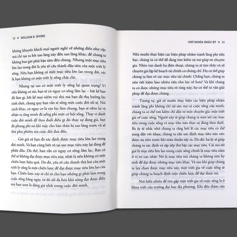 Chủ Nghĩa Khắc Kỷ – Phong Cách Sống Bản Lĩnh Và Bình Thản Bạn mong muốn điều gì từ cuộc sống này? Có thể câu trả lời của bạn là muốn có một người bạn đời biết quan tâm, một công việc tốt và một ngôi nhà đẹp, nhưng chúng thực ra chỉ là một số thứ bạn muốn có trong cuộc sống. Khi hỏi bạn mong muốn điều gì từ cuộc sống này, tôi đang hỏi theo nghĩa rộng nhất. Tôi không hỏi về những mục tiêu mà bạn đề ra khi thực hiện các hoạt động hằng ngày, mà tôi đang hỏi về mục tiêu lớn lao trong cuộc sống của bạn. Nói cách khác, trong số những thứ bạn có thể theo đuổi trong cuộc sống, thứ nào bạn tin là có giá trị nhất? Nhiều người sẽ khó lòng nêu ra được mục tiêu này. Họ biết mình muốn gì trong từng phút một hoặc thậm chí từng thập kỷ một trong suốt cuộc đời mình, nhưng họ chưa bao giờ dành thời gian để suy ngẫm về mục tiêu sống lớn lao của bản thân. Chuyện này có lẽ cũng dễ hiểu. Nền văn hóa của chúng ta vốn không khuyến khích mọi người nghĩ về những điều như vậy, mà chỉ tạo ra hết xao lãng này đến xao lãng khác, để chúng ta không bao giờ phải bận tâm đến chúng. Nhưng một mục tiêu lớn lao trong đời là thành phần đầu tiên của một triết lý sống. Nếu bạn không có một mục tiêu lớn lao trong đời, tức là bạn không có một triết lý sống chặt chẽ. Nhưng tại sao có một triết lý sống lại quan trọng? Vì nếu không có nó, bạn sẽ có nguy cơ sống lầm lạc – bất kể bạn đã làm gì, bất kể mọi niềm vui thú mà bạn đã thụ hưởng lúc sinh thời, chung quy bạn vẫn sẽ sống một cuộc đời tồi tệ. Nói cách khác, có nguy cơ là lúc bạn đang nằm hấp hối trên giường, bạn sẽ nhìn lại và nhận ra rằng mình đã uổng phí một cơ hội sống. Thay vì dành cuộc đời mình để theo đuổi điều gì đó thực sự đáng giá, bạn đã phung phí nó khi mặc cho bản thân bị xao lãng trước vô số thứ phù phiếm mà cuộc đời đưa đến. Giờ giả sử bạn đã xác định được mục tiêu lớn lao trong đời mình. Và bạn cũng biết rõ tại sao mục tiêu này lại đáng để phấn đấu. Dù thế, bạn vẫn có nguy cơ sống lầm lạc. Bạn có thể sẽ không đạt được mục tiêu này, nhất là nếu không có một chiến lược hiệu quả. Do đó, thành phần thứ hai của một triết lý sống là một chiến lược để đạt được mục tiêu lớn lao của bạn. Chiến lược này sẽ chỉ rõ cho bạn phải làm những gì trong cuộc sống hằng ngày, từ đó tối đa hóa khả năng đạt được điều mà bạn xem là đáng giá nhất trong cuộc đời mình. Cuốn sách này dành cho những người đang tìm kiếm một triết lý sống. Trong các trang tiếp theo, tôi sẽ tập trung vào một triết lý mà tôi thấy hữu ích và tôi nghĩ rằng nhiều độc giả cũng sẽ thấy như vậy. Đó là triết lý của trường phái Khắc kỷ cổ đại. Tuy triết lý sống này đã lâu đời nhưng ngày nay nó xứng đáng nhận được sự chú ý của bất kỳ cá nhân nào mong muốn có được một cuộc sống vừa ý nghĩa vừa trọn vẹn – những người mong muốn có được một cuộc sống tốt đẹp. Nói cách khác, cuốn sách này đưa ra lời khuyên mọi người nên sống như thế nào. Đúng hơn, tôi sẽ là cầu nối mang đến cho bạn lời khuyên của các triết gia Khắc kỷ từ hai ngàn năm trước. Đây là điều mà các triết gia đồng nghiệp của tôi thường miễn cưỡng thực hiện, nhưng nói đi cũng phải nói lại, họ chủ yếu quan tâm đến “tính học thuật” của triết học; tức là họ chuyên nghiên cứu về lý thuyết hoặc lịch sử. Ngược lại, tôi quan tâm đến tính thực tiễn của chủ nghĩa Khắc kỷ: mục tiêu của tôi là áp dụng triết lý này vào cuộc sống của mình và khuyến khích người khác áp dụng nó vào cuộc sống của họ. Tôi cho rằng các triết gia Khắc kỷ cổ đại sẽ khuyến khích cả hai đường hướng này, nhưng họ cũng sẽ khẳng định rằng lý do chính để tìm hiểu về chủ nghĩa Khắc kỷ là nhằm áp dụng nó vào thực tiễn. Điểm nữa cần hiểu rõ là mặc dù chủ nghĩa Khắc kỷ là một triết lý, nhưng nó cũng bao hàm cả yếu tố tâm lý. Các nhà Khắc kỷ nhận ra rằng một cuộc sống đầy rẫy cảm xúc tiêu cực – bao gồm tức giận, lo lắng, sợ hãi, đau buồn và ghen tị – không phải là một cuộc sống tốt đẹp. Do đó, họ trở thành những nhà quan sát nhạy bén về hoạt động của tâm trí con người và kết quả là trở thành một số nhà tâm lý học uyên bác nhất thời cổ đại. Họ tiếp tục phát triển các kỹ thuật để ngăn không cho các cảm xúc tiêu cực xuất hiện và để dập tắt chúng khi những nỗ lực ngăn chặn thất bại. Ngay cả những độc giả không tin tưởng phương pháp suy diễn của triết học cũng nên quan tâm đến các kỹ thuật này. Suy cho cùng, ai lại không muốn giảm bớt số lượng cảm xúc tiêu cực trong cuộc sống hằng ngày ———— Công ty phát hành Thái Hà Tác giả William B. Irvine Ngày xuất bản 02-2020 Nhà xuất bả