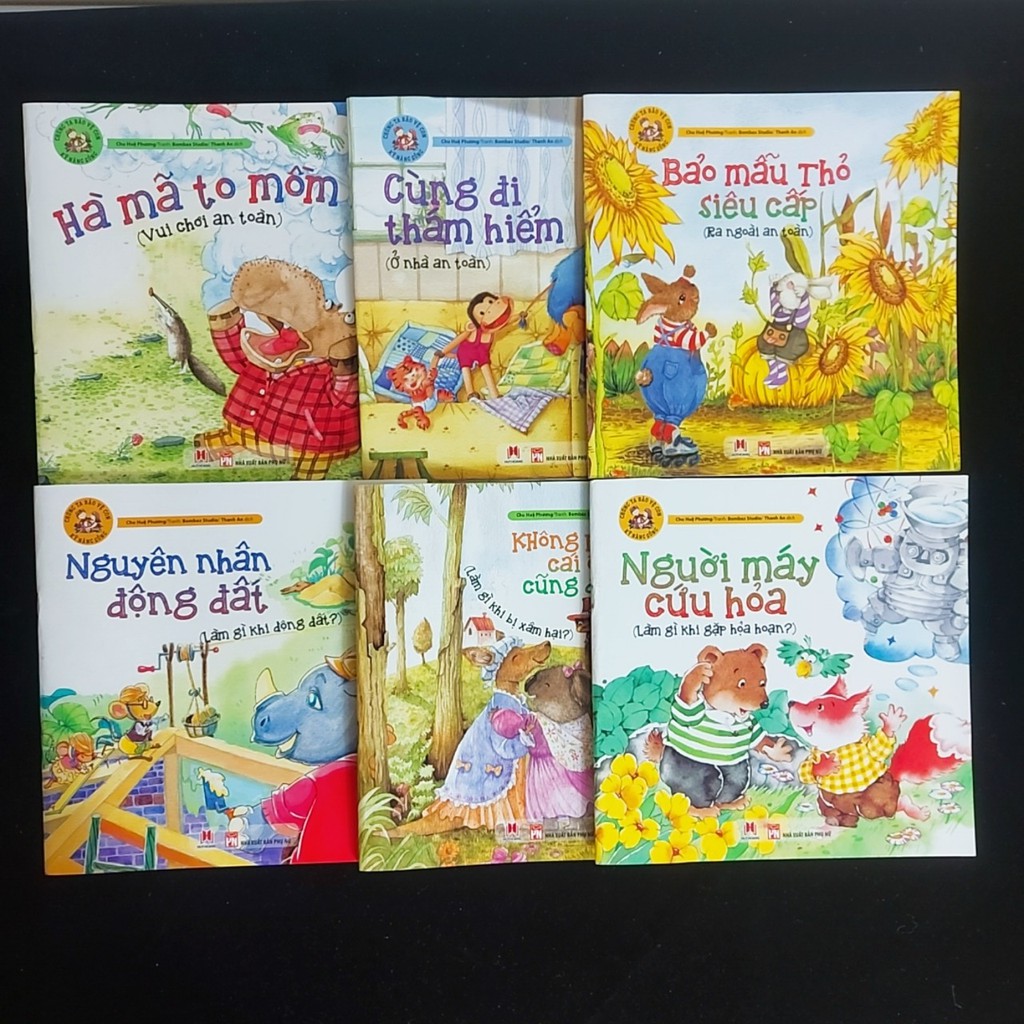 Dịch giả: Thanh An Nhà xuất bản: Phụ nữ Khổ giấy: 20,5×20,5 Năm xuất bản: 2016 Số trang: 35 Bộ tranh truyện Chúng ta bảo vệ con với 6 câu chuyện: Hà mã to mồm, Nguyên nhân động đất, Người máy cứu hỏa, Bảo mẫu Thỏ siêu cấp, Cùng đi thám hiểm, Không phải cái ôm nào cũng đẹp là những tình huống thiết thực, dễ gặp phải trong cuộc sống. Các cách xử lí khi gặp sự cố phù hợp với các em nhỏ giúp các em học được những kĩ năng cơ bản nhất. Câu chuyện tuy nhỏ nhưng bài học các em học được là vô cùng lớn, giúp các em trưởng thành hơn và tự lập hơn. Chính những ví dụ minh họa qua các nét vẽ sinh động giúp các em vừa học vừa chơi không bị áp đặt, gò bó. Các bậc phụ huynh cũng có thể hướng dẫn các bé các kĩ năng phòng vệ và tự bảo vệ mình khi rơi vào những tình huống nguy hiểm khi không có người lớn bên cạnh.