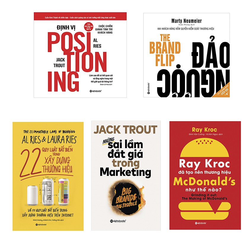 Sách – (Combo 5 cuốn) – Xây dựng thương hiệu trong kỷ nguyên 4.0 ebook pdf review dowload tác giả , Danh Mục Sách Kinh Tế Kho hàng 10 . Bộ sách này gồm 5 cuốn: 1. 22 quy luật bất biến trong xây dựng thương hiệu Công ty phát hành: Alphabooks Tác giả: Al Ries, Laura Ries Nhà xuất bản: NXB Công Thương Năm xuất bản: 2020 Số trang: 348 Kích thước(cm): 16 x 24 Quy cách bìa mềm Ngắn gọn, dễ hiểu và có tính thực tiễn cao, cuốn 22 Quy luật bất biến trong Xây dựng thương hiệu đem đến cho người đọc những câu trả lời dứt khoát về quá trình xây dựng thương hiệu với những ví dụ minh họa về các thương hiệu thành công nhất trên thế giới như Rolex, Volvo và Heineken. Cuốn sách cũng cung cấp cho người đọc cơ hội để tiếp cận kinh nghiệm và bí quyết xây dựng thương hiệu của những chuyên gia Marketing nổi tiếng thế giới như Al và Laura Ries. “Cách duy nhất để vượt trội trong thương trường ngày nay là phải xây dựng sản phẩm hay dịch vụ của mình thành một thương hiệu – một thương hiệu thực sự”. 2. Những sai lầm đắt giá trong Marketing Công ty phát hành: Alphabooks Tác giả: Jack Trout Nhà xuất bản: NXB Công Thương Năm xuất bản: 2020 Kích thước(cm): 16 x 24 Số trang: 364 Quy cách bìa mềm Cách đây không lâu, Levis Strauss, Xerox, Crest, AT&T, và Firestone đều thống trị thị trường riêng của họ. Nhưng điều gì đã xảy ra khiến họ và những thương hiệu hàng đầu khác mất đi vị thế dẫn đầu của mình? Sự suy yếu này có đơn giản chỉ là do hậu quả tất yếu của sự thay đổi và sự xuất hiện của nhiều đối thủ cạnh tranh mới? Trong Những sai lầm đắt giá trong Marketing, “vua định vị” Jack Trout tiết lộ về những sai lầm tai hại trong marketing dẫn đến rắc rối đối với một số thương hiệu hàng đầu và đưa ra những phân tích cụ thể về các cách thức giúp tránh được những sai lầm đó. 3. Định vị Công ty phát hành: Alpha Books Tác giả: Jack Trout, Al Ries Nhà xuất bản: NXB Công Thương Năm xuất bản: 2020 Số trang: 352 Kích thước: 20.5 x 18.5 Quy cách bìa mềm Cuốn sách sẽ chỉ cho bạn cách: + Sử dụng vị trí hiện tại của bạn như là lợi thế lớn nhất. + Chọn được cái tên tuyệt nhất cho sản phẩm của bạn. + Xác định lý do và thời điểm “Ít lại tốt hơn nhiều”. + Xây dựng chiến lược của bạn xoay quanh điểm yếu của đối thủ cạnh tranh. + Phân tích những xu hướng gần đây có thể ảnh hưởng tới vị trí của bạn. + Sử dụng công nghệ của các hãng quảng cáo hàng đầu để nắm bắt được thị phần lớn nhất và trở thành cái tên quen thuộc với mỗi hộ gia đình. 4. Ray Kroc Đã Tạo Nên Thương Hiệu McDonald’s Như Thế Nào? Công ty phát hành: Alpha Books Tác giả: Ray Kroc Năm xuất bản: 2020 Kích thước: 13 x 20.5 cm Nhà xuất bản: NXB Thế Giới Số trang: 250 Kích thước: 16 x 24 Quy cách bìa mềm “Columbus khám phá ra nước Mỹ, Jefferson định hình nó, và Ray Kroc đem Big Mac đến với nó.” – Tom Robbins, tạp chí Esquire. “Với bất cứ ai muốn tìm hiểu nhiều chi tiết đời tư và những câu chuyện kinh doanh tuyệt diệu của MCDonald’s, Ray Kroc đã tạo nên thương hiệu MCDonald’s như thế nào? là cuốn sách đáng để đọc.” – The Houston Post “Có nhiều điều bất ngờ trên từng trang của câu chuyện thẳng thắn, dí dỏm, từ bần-cùng-tới-giàu-có này.” – The Boston Globe 5. Đảo ngược Công ty phát hành: Alpha Books Tác giả: Marty Neumeier Nhà xuất bản: NXB Lao Động Xã Hội Năm xuất bản: 2020 Số trang: 188 Kích thước: 20.5 x 20.5 Quy cách bìa mềm “Marty Neumeier là một bậc thầy kể chuyện, khiến cho cuốn sách này trở nên thú vị khi đọc. Về cơ bản, tâm lý người tiêu dùng đã thay đổi trong thập kỷ qua. Marty không hề nản chí trước những khó khăn trong việc thích ứng với sự thay đổi này.”(Tiến sĩ Kit Yarrow, chuyên gia phân tích tâm lý người tiêu dùng, tác giả cuốn sách “Decoding the customer mind”) Tiến sâu vào một sự thật mới mẻ: các công ty không tạo ra thương hiệu, khách hàng mới làm điều đó.” (Robert Jones, chiến lược gia tại công ty Wolff Olins và giáo sư tại Đại học Đông Anglia, Anh Quốc). Trở nên thông minh: Hãy đọc cuốn sách “Đảo Ngược” và tìm hiểu xem tại sao khách hàng muốn tiếp quản thương hiệu của bạn và làm thế nào để giúp họ làm điều đó.” (Greg Petroff, Giám đốc điều hành tại GE Digital)
