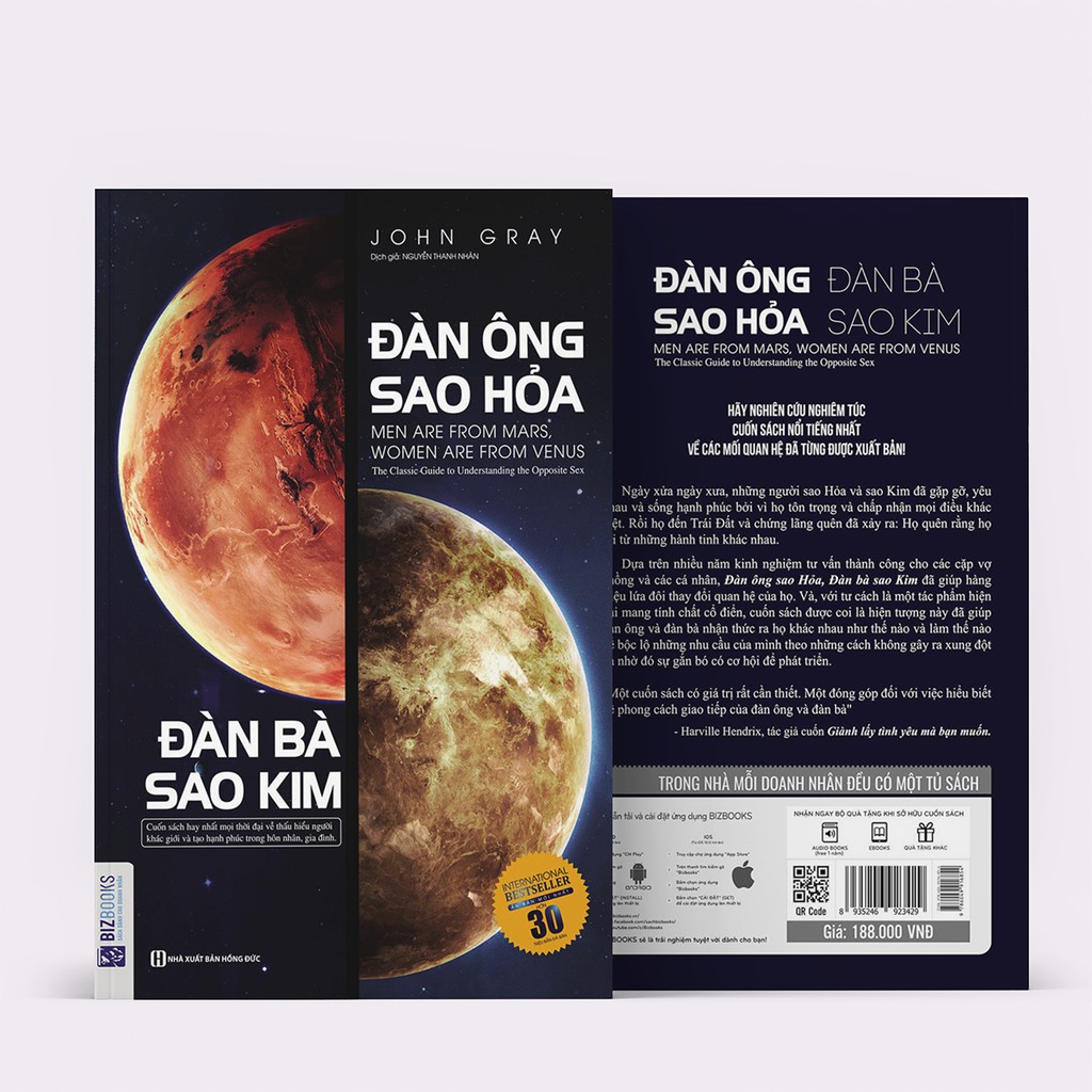 UY TÍN của doanh nghiệp, NIỀM TIN của khách hàng là yếu tố quan trọng hàng đầu để doanh nghiệp duy trì và phát triển. Chính vì vậy, Shop luôn nỗ lực hướng tới chuyên nghiệp trong phong cách phục vụ và chất lượng sản phẩm. Điều này được toàn bộ nhân viên thấu hiểu và xem là PHƯƠNG CHÂM LÀM VIỆC của shop! Chúng tôi cam kết: – 100% Sách chuẩn của các Nhà xuất bản trong nước – Sách của shop là mới 100% – Sách được đóng bọc rất cẩn thận bằng màng co/ túi nilon/ bóng xốp khí + Hộp bìa carton chuyên dụng Khi mua sách tại LMCBooks: – Nghe sách trực tiếp trên App online BIZBooks – Tặng ngay Bookmark để dễ dàng ghi nhớ phần đã học tới của sách. – Tặng ngay Voucher giảm giá 5% trong vòng 5 năm khi sử dụng sách của BIZBooks. – Lưu ý: Chỉ có sách chính hãng của BIZBooks mới có thể quét được mã QR-code cho các file nghe đi kèm theo sách. Thời gian làm việc: từ 8h00 – 18h00 hằng ngày (Nghỉ Chủ Nhật). Ngoài thời gian làm việc shop vẫn sẽ nhiệt tình tư vấn cho quý khách hàng khi đọc được ibox, nhưng có thể chậm trễ hơn, mong quý khách thông cảm và chờ shop phản hồi nhé ạ! ———————————- “Đàn Ông Sao Hỏa – Đàn Bà Sao Kim” là cuốn sách giúp bạn có thêm sức mạnh và sự thông thái để điều chỉnh cách tiếp cận của mình thay vì tìm kiếm sự thay đổi của bạn đời, từ đó đạt được thỏa thuận ngầm chung và xây dựng cuộc sống gia đình hạnh phúc. Người ta thường nói, đàn bà khi yêu sẽ dọn dẹp lại cuộc sống, bỏ bớt những gì thừa thãi để chỗ trống cho người đàn ông của mình. Ngược lại, đàn ông lại muốn ‘nhét’ người đàn bà vào cuộc sống hàng ngày của anh ta cùng với tất cả mọi thứ khác. Người ta thường nói rằng đàn ông và đàn bà là “hai thái cực” hoàn toàn khác nhau, vậy nên giữa nam giới và nữ giới luôn luôn có những sự khác biệt và thậm chí là đối lập rõ rệt. Nhưng, thực ra đàn ông và đàn bà có rất nhiều điểm chung, hiểu được điều này phụ nữ sẽ bớt nặng lòng.. Sự khác nhau giữa 2 thái cực đàn ông và đàn bà – sao hỏa và sao kim – Sự khác biệt cơ bản về bộ não: – Nếu như đàn ông thường hay suy nghĩ đến các vấn đề về kĩ thuật, thể thao và đặc biệt là tình dục thì phụ nữ lại chú trọng tới thời trang và sự chia sẻ. – Khi đàn ông và đàn bà giải quyết những căng thẳng – Trong khi những người sao Hỏa có xu hướng yên lặng suy ngẫm về những điều đang làm phiền họ thì những người sao Kim có nhu cầu bản năng được nói ra những điều đang quấy rầy họ. – Đàn ông và đàn bà thường hiểu lầm nhau do họ sử dụng ngôn ngữ khác nhau – Bạn sẽ hiểu khi đàn ông và đàn bà nói và thậm chí ngừng nói vì những lý do hoàn toàn khác nhau. – Đàn ông và đàn bà có những nhu cầu về tình cảm khác nhau “Có điều gì khác biệt trong vùng não cảm xúc của đàn ông và đàn bà? Họ có thể đọc được cảm xúc của nhau và hiểu nhau đến đâu? Tại sao người ta thường đã phải cáu kỉnh, mệt mỏi, buồn phiền trong công việc, mà khi trở về nhà lại không tìm được sự chia sẻ của bạn đời? Mỗi khi người phụ nữ cáu giận, liệu có phải chỉ do lỗi của đàn ông? Còn khi người đàn ông cô đơn và muốn ở một mình, vì sao người phụ nữ lại luôn nghĩ lỗi là tại họ? Người phụ nữ thì không hiểu được điều đó và quy về vấn đề của trái tim, cho rằng anh ta không hiểu và không quan tâm đến cô”. Những mâu thuẫn mà John Gray chỉ ra trong cuốn sách rất thường gặp trong cuộc sống hiện đại, khi con người càng cố gắng vươn tới sự toàn vẹn và hoàn hảo. Đặc biệt, khi nền tảng kinh tế và nhiều chuẩn mực trong xã hội thay đổi, mối quan hệ giữa người với người cũng thay đổi theo, trong đó có quan hệ vợ chồng. Tất cả những thắc mắc trên đều được Tiến sĩ John Gray giải đáp trong cuốn sách “Đàn ông sao hỏa- Đàn bà sao kim”. Hãy tìm đọc để hiểu hơn về những “Sao Kim” – “Sao Hỏa” trong đời sống nhé !!!! Thông tin sản phẩm —————————- Công ty phát hành BIZBOOKS Tác giả John Gray Ngày xuất bản 01-2019 Nhà xuất bản Nhà Xuất Bản Hồng Đức Số trang 488 ———————————- #bizbook #sach #banhang #cafe #doanhnhan #kinhte #kinhdoanh #sachkynangsong #dautu
