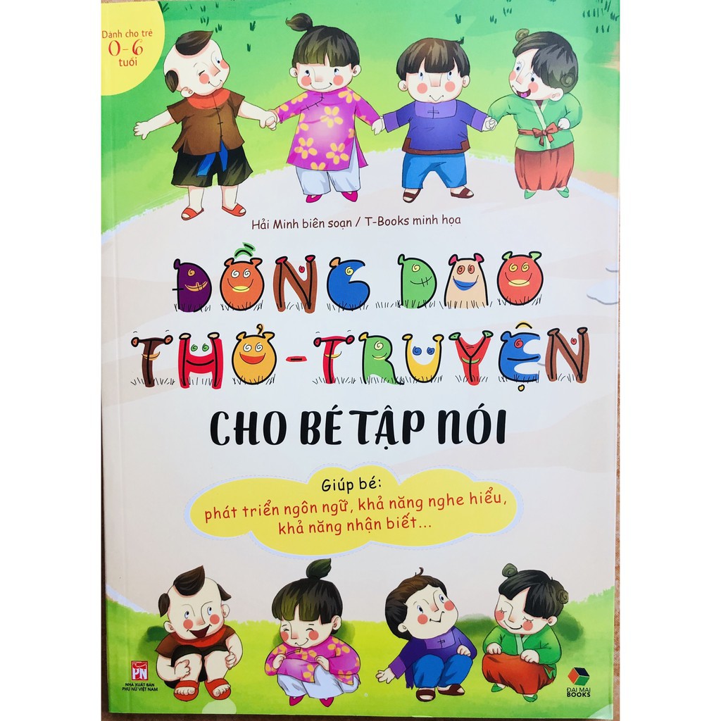Sách – Đồng Dao Thơ – Truyện cho bé tập nói ebook pdf review dowload tác giả , Danh Mục Sách Thiếu Nhi Ngôn ngữ Tiếng Việt Nhập khẩu/ trong nước Trong nước Kho hàng 43 . Công ty phát hành NS Đại Mai Tác giả Nhiều tác giả Nhà xuất bản Phụ Nữ Năm xuất bản 2019 Số trang 128 Giới thiệu sách Đồng dao thơ – truyện cho bé học nói Đồng dao thơ-truyện cho bé tập nói , giúp bé phát triển ngôn ngữ, khả năng nghe hiểu, khả năng nhận biết, Ngay từ năm đầu đời, bé có thể bập bẹ những tiếng nói đầu tiên. Theo thời gian, ngôn ngữ của bé càng được hoàn thiện và phát triển. Đọc sách cho bé nghe để khuyến khích bé tập nói là một trong những phương pháp tối ưu giúp bé phát triển ngôn ngữ. Cuốn sách Đồng dao -Thơ -Truyện cho bé tập nói ” tuyển chọn những bài đồng dao, bài thơ và những câu chuyện phù hợp cho lứa tuổi tập nói, sách gồm có 3 phần. Đồng dao : là thơ ca truyền miệng dân gian, có nhịp có vần. Trẻ em nhỏ chưa hiểu lời thích đồng dao và chỉ cần mẹ đọc cho nghe, bé dậm chậm chân, vỗ vỗ tay theo nhịp. Bé lớn hơn càng thích đồng dao vì các bé có thể vừa hát đồng dao, vừa chơi những trò chơi gắn với đồng Phần Thơ : tuyển chọn những bài thơ hay, ngắn và nghộ nghĩnh. Phần Truyện : gồm những câu chuyện nhỏ dễ đọc, dễ hiểu, nội dung phong phú. Dung lượng chữ trong mỗi chuyện phù hợp với sự tiếp nhận của các bé trong độ tuổi tập nói. Cuốn sách có tranh minh họa sinh động, không chỉ giúp bé phát triển ngôn ngữ mà còn giúp bé hiểu thêm về cuộc sống quanh mình. Sách phù hợp với bé từ 0-6 tuổi,