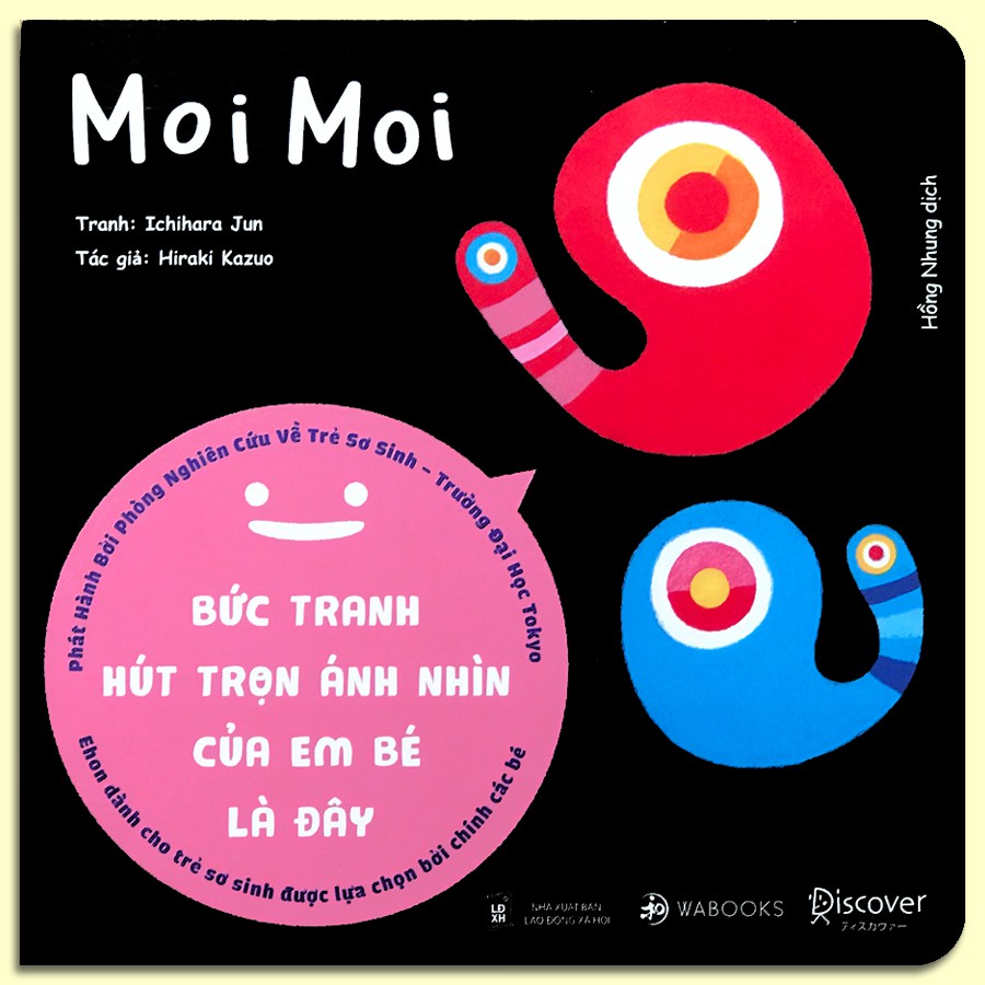 Ehon Moi Moi (dành cho trẻ sơ sinh) Năm 2017, “Moi Moi” ra đời sau 2 năm nghiên cứu bởi 5000 người, bao gồm Giáo sư Hiraki Kazuo cùng cộng sự tại Phòng Nghiên cứu trẻ sơ sinh thuộc Đại học Tokyo, và rất nhiều những ông bố, bà mẹ và em bé khác trên khắp Nhật Bản. Ngay trong 7 tháng đầu tiên kể từ khi phát hành, “Moi Moi” bán ra hơn 100.000 bản. Theo thống kê, cứ 7 em bé Nhật Bản thì có 1 em bé đọc “Moi Moi”. Cuốn Ehon này cũng liên tục đứng trong top những cuốn sách bán chạy nhất: #1 năm 2018 trên A, #1 “Ehon của năm 2018” của Rakuten Books, Đây thực sự là một cú hit lớn trong ngành Ehon Nhật Bản. Vậy cuốn ehon có điều gì mà có thể khiến các em bé ngừng khóc? – Đầu tiên, đó là hình ảnh minh họa. Em bé thường chú ý tới những hình vẽ có màu sắc rực rỡ, tươi sáng và hình dạng tương tự như khuôn mặt hay đôi mắt của con người. “Nhân vật chính” của Moi Moi đáp ứng được những điều kiện đó, và là hình minh họa được chính các em bé lựa chọn thông qua những cuộc thực nghiệm. – Bên cạnh đó, em bé cũng rất nhạy cảm với những âm thanh, đặc biệt là những cụm từ dễ phát âm, giàu nhịp điệu, lặp đi lặp lại như “Moi Moi”. Hóa ra những điều kỳ cục đối với người lớn, lại có thể đem lại sự tò mò lớn cho các em bé, khiến các em bé hào hứng thích thú. Chính sự tò mò đó đã thu hút ánh nhìn của các em bé vào cuốn sách, dần dần “chiến thắng” mong muốn gào khóc của trẻ! Mỗi cuốn sách đi kèm 1 thẻ hướng dẫn cách đọc dành cho cha mẹ. ———–00000—— Công ty phát hành Wabooks Tác giả Hiraki Kazuo Ngày xuất bản 05-2019 Kích thước 20 x 20 cm Nhà xuất bản Nhà Xuất Bản Lao Động – Xã Hội Loại bìa Bìa mềm Số trang 23 ——00000—– #ehon, #flashcard, #sách-truyệnthiếunhi #báchkhoatoànthưchobé, #sáchchiếubóng, #flashcardstiếnganh, #glenndoman, #sáchnuôiconkhôngphảicuộcchiến, #flashcard, #thẻhọc, #combo, #sáchhay, #nhàsáchonline