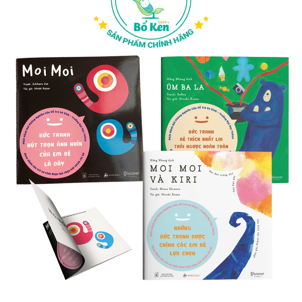 Sách Ehon Wabooks Nhật – Bộ Moi Moi Và Những Người Bạn (3 cuốn) Công ty phát hành: Wabooks Nhà xuất bản: NXB Lao động – Xã hội Tác giả: Nhiều Tác Giả Loại bìa: Bìa mềm Mực in màu chiết xuất dầu đậu nành nhập khẩu Nhật Bản an toàn cho bé Giấy C150 dày khó nhàu rách Năm xuất bản: 2019 Số trang: 24/cuốn Giá bìa: 39k/cuốn Bố Ken đã giới thiệu lợi ích quan trọng của việc đọc sách cũng như đọc các bộ nào tại link: https://Shop.vn/-M%C3%A3-BM2202-gi%E1%BA%A3m-15-%C4%91%C6%A1n-b%E1%BA%A5t-k%E1%BB%B3-S%C3%A1ch-Ehon-Wabooks-Nh%E1%BA%ADt-C%C3%A1c-B%E1%BB%99-Ch%E1%BB%8Dn-L%E1%BB%8Dc-Th%C3%ADch-Nh%E1%BA%A5t-Cho-B%C3%A9-0-6-Tu%E1%BB%95i–i.184393370.3916418437 Và hôm nay Tủ Sách Shop Bố Ken xin giới thiệu bộ MOI MOI: (Bản mới 3 cuốn) 1. MoiMoi và những con số ấn tượng. Cuốn ehon được nghiên cứu thực hiện bởi các giáo sư trường ĐH Tokyo Nhật Bản trong vòng 2 năm. Đây cũng là một trong số những thành quả của quá trình nghiên cứu về trẻ sơ sinh trong suốt 20 năm ròng rã của Phòng nghiên cứu về trẻ sơ sinh – Đại học Tokyo và nhận được sự hợp tác tham gia thực nghiệm của hơn 5000 người, gồm các em bé và bố mẹ. Đây là cú hit lớn trong ngành ehon Nhật Bản, với doanh số hơn 200.000 bản chỉ trong chưa đầy 2 năm phát hành, và 100.000 bản chỉ trong 7 tháng phát hành đầu tiên. Trung bình cứ 7 em bé ở Nhật thì có 1 em bé được đọc và yêu thích MoiMoi. 3. Phân loại và nội dung: a. Cuốn MoiMoi Những hình vẽ có màu sắc nổi bật với những màu cơ bản hay những bức vẽ mô tả giống con người thường được các em bé chú ý. Những hình tròn trong các bức tranh có hình thù như những đôi mắt nhìn chính diện đã được các em bé lựa chọn – Ehon vì em bé b. Cuốn Úm ba la Đây là những bức tranh mà các em bé lựa chọn có sự lựa chọn trái ngược với bố mẹ. Chú Gấu – nhà ảo thuật xuất hiện trong cuốn sách lấy ra rất nhiều đồ trong chiếc túi của mình thu hút sự tò mò của bé: Thứ tiếp theo chú gấu lấy ra là gì nhỉ? Thì ra thứ mà bé thích không giống với thứ mà bế mẹ thích đâu? Suy nghĩ của trẻ đơn giản và kì lạ vô cùng. c. Cuốn MoiMoi và Kiri. Từ minh họa cho những từu tượng thanh, tượng hình cho trước như “lõm bõm”, “chích chích”, cuốn Ehon MoiMoi và Kiri ra đời. Cuốn sách đã đưa các em bé vào thế giới phiêu lưu của những từ tượng thanh , tượng hình đa dạng ấy. 4. Bộ sách phát triển thùy não nào? Thùy chẩm – Nơi có vai trò tiếp nhận thông tin qua thị giác, giúp trẻ phân biệt màu sắc, hình ảnh, có ảnh hưởng lớn tới khiếu thẩm mỹ. Thùy thái dương – khả năng sử dụng ngôn ngữ, kích thích phát triển thính giác. 5. Điều đặc biệt của cuốn sách là gì? Bộ ehon thu hút ánh nhìn của mọi em bé. Lắng nghe những gì bé đang nghĩ và sử dụng nó để tạo ra một cuốn sách ảnh mà bé thực sự yêu thích! 6. Vì sao MoiMoi có thể khiến em bé nín khóc? ► Hình vẽ – Gần giống với đôi mắt – phương tiện giao tiếp của em bé khi mà các em bé chưa biết nói – Sử dụng các màu sắc rực rỡ, thu hút ► Âm thanh – Dễ phát âm, lặp đi lặp lại – Có khả năng trấn an tinh thần các bé Sự tò mò mà cuốn ehon đem lại đã “chiến thắng” mong muốn khóc của bé, khiến cho bé có thể ngừng khóc và chăm chú dõi theo từng trang sách. Đây không chỉ là một cuốn ehon thông thường, mà còn là một công cụ đắc lực, một vị cứu tinh cho các bố mẹ trong công cuộc chăm con, đặc biệt với trẻ trong độ tuổi 0-2 tuổi. 7. Đọc MoiMoi thế nào cho đúng? Bố Ken sẽ gửi video hướng dẫn sau khi đặt hàng ạ. Ba Mẹ đừng ngần ngại! Lên giọng, xuống giọng, kéo dài hay gấp gáp, … Hãy điều chỉnh tông giọng tương tự như cách trình bày trong cuốn sách – Hãy lồng ghép cảm xúc tương ứng với từng giọng đọc, giúp bé nhạy cảm hơn với cảm xúc của bố mẹ, hãy đọc cuốn ehon bằng cả con tim – Hãy vừa đọc, vừa chỉ tay miêu tả theo các hình vẽ trong sách, điều này sẽ khiến bé chú ý hơn vào trang sách – Em bé có sự nhạy cảm đối với âm thanh so với hình ảnh, màu sắc, vậy nênkhông cần thiết phải mua một cuốn ehon mới, bố mẹ chỉ cần thay đổi giọng đọc đã có thể đem lại sự mới mẻ cho bé. Thực sự đây xứng đáng là bộ sách thu hút ánh nhìn của mọi em bé. Inb Cho Bố Ken nếu cần tư vấn Ba Mẹ nhé. #Ehon #ehonwabooks #ehonnhật #sáchEhon #sáchehonwabooks #shopboken #shopbốken #bốken #moimoi #tủsáchshopbốken