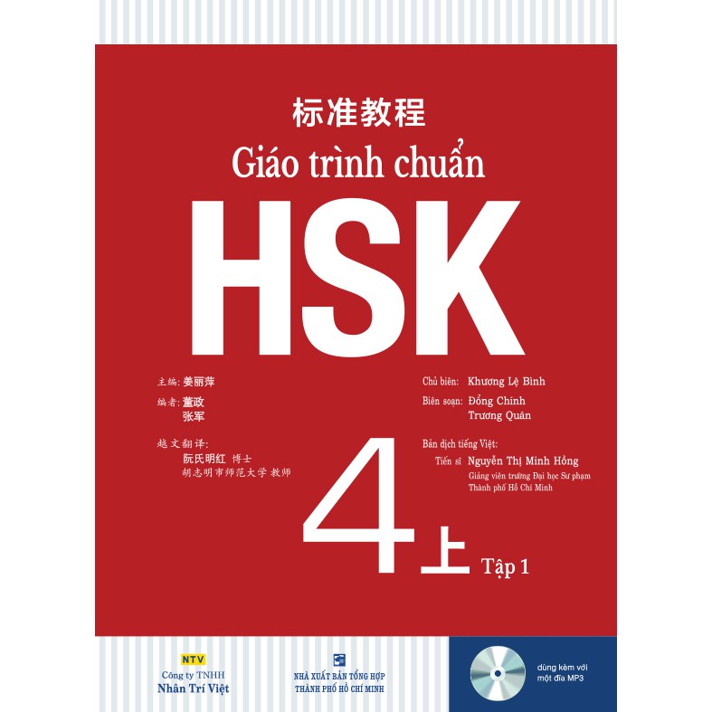 Sách – Giáo trình chuẩn HSK 4 – Tập 1 ebook pdf review dowload tác giả Khương Lệ Bình, Danh Mục Sách Ngoại Ngữ Thương hiệu Khương Lệ Bình Nhập khẩu/ trong nước Trong nước Kho hàng 77 . Tác giả: Khương Lệ Bình Nhà xuất bản Tổng Hợp Thành Phố Hồ Chí Minh Số trang: 150 Kích thước: 21cm x 28.5cm x 0.8cm Cân nặng: 430g Năm xuất bản: 2021 Được chia thành 6 cấp độ với tổng cộng 18 cuốn, Giáo trình chuẩn HSK có những đặc điểm nổi bật sau: • Kết hợp thi cử và giảng dạy: Được biên soạn phù hợp với nội dung, hình thức cũng như các cấp độ của đề thi HSK thật, bộ sách này có thể được sử dụng đồng thời cho cả hai mục đích là giảng dạy tiếng Trung Quốc và luyện thi HSK. • Bố cục chặt chẽ và khoa học: Các điểm ngữ pháp được giải thích cặn kẽ, phần ngữ âm và chữ Hán được trình bày từ đơn giản đến phức tạp theo từng cấp độ. Đề tài quen thuộc, nhiều tình huống thực tế: Bài học được thiết kế không quá dài và đề cập đến nhiều tình huống (có đĩa MP3 kèm theo), giúp bạn rèn luyện các kỹ năng ngôn ngữ và tránh cảm giác căng thẳng trong lúc học. • Cách viết thú vị: Bằng cách viết sinh động kèm nhiều hình ảnh minh họa, tác giả bộ sách chỉ cho bạn thấy học tiếng Trung Quốc không hề khô khan, nhàm chán. Với nhiều ưu điểm nổi bật như vừa nêu, Giáo trình chuẩn HSK không chỉ là tài liệu giảng dạy hữu ích ở các trung tâm dạy tiếng Trung Quốc mà còn rất thích hợp với những người muốn tự học ngôn ngữ này. Vài nét về tác giả: Khương Lệ Bình là giáo sư ở Đại học Ngôn ngữ Bắc Kinh và cũng là người hướng dẫn cho các học viên cao học. Lĩnh vực nghiên cứu chủ yếu của bà là lý luận dạy học, phương pháp dạy học và tài liệu giảng dạy tiếng Trung Quốc. Nhiều sách chuyên ngành và tài liệu giảng dạy của bà đã được xuất bản. Bà cũng từng đến dạy học ở các quốc gia như Mỹ, Nhật Bản, Hongkong, Thái Lan.