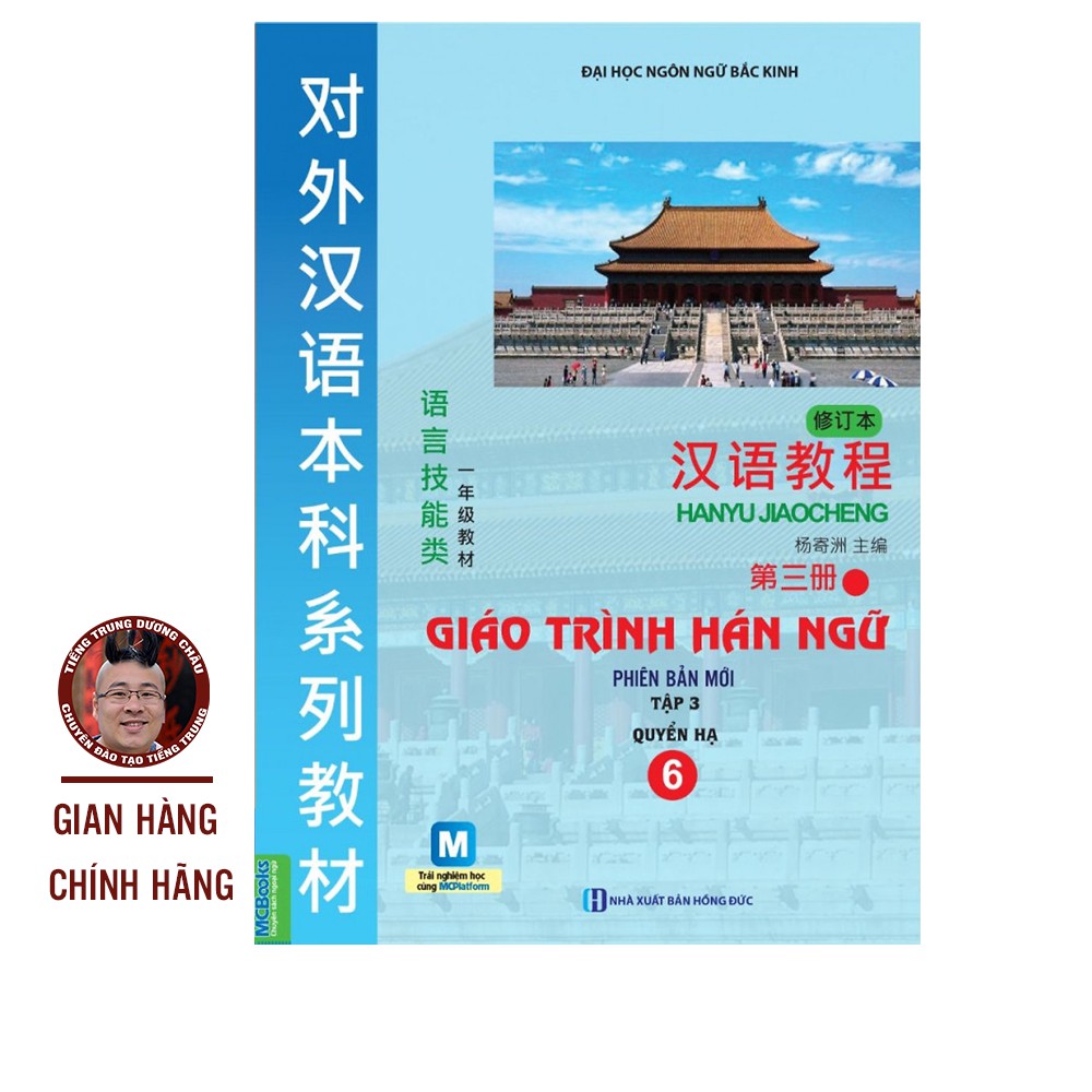 THÔNG TIN CHI TIẾT: Tên sản phẩm: Giáo Trình Hán Ngữ 6 Tập 3 Quyển Hạ Nhà xuất bản: Đại học Quốc Gia Hà Nội Tác Giả: Dương Ký Châu Công ty phát hành: Công ty CP sách MCBooks Số trang: 218 Loại bìa: bìa mềm Năm xuất bản: 2020 Bộ Giáo Trình Hán Ngữ – Đại học Ngôn Ngữ Bắc Kinh, tác giả Dương Ký Châu, chủ biên Trần Thị Thanh Liêm là bộ giáo trình cơ bản và dễ tiếp cận nhất đối với những người mới học tiếng Trung hiện nay, gồm 3 tập như sau: Tập 1: Hán 1 – quyển Thượng Hán 2 – quyển Hạ Tập 2: Hán 3 – quyển Thượng Hán 4 – quyển Hạ Tập 3: Hán 5 – quyển Thượng Hán 6 – quyển Hạ Mỗi bài học bao gồm các phần: Bài khóa Từ mới Chú thích Ngữ pháp, ngữ âm Luyện tập Giáo Trình Hán Ngữ có 3300 từ mới. Phần bài khóa và nội dung đàm thoại có quan hệ chủ điểm đồng nhất với bài luyện đọc trong phần bài tập, trên cơ sở bảng từ mới của từng bài. Các chủ đề từ cơ bản tới nâng cao, gần gũi vói đời sống hàng ngày. Đặc biệt, cuốn sách học cùng app MCBooks ghi giọng đọc chuẩn Bắc Kinh giúp bạn luyện nghe và học phát âm chuẩn giọng bản xứ. Mục lục Hán ngữ 6: Bài 14: Ai làm chủ gia đình Bài 15: Sau khi bị thương Bài 16: Bàn về “Cứ từ từ” Bài 17: Thử lại lần nữa Bài 18: Một hộp bánh gato Bài 19: Giọt nước mắt không lời Bài 20: Điều gì quan trọng nhất Bài 21: Cắt tóc Bài 22: Tấm lòng người mẹ Bài 23: Trường học trên mạng Bài 24: E.Q – Chỉ số cảm xúc Bài 25: Bạn thích màu gì Bài 26: Lương Sơn Bá – Chúc Anh Đài