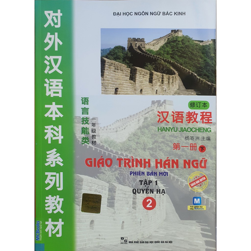Công ty phát hành MCBOOKS Tác giả Nhiều Tác Giả Số trang: 175 Ngày xuất bản 11-2020 Kích thước 19 x 27 cm Nhà xuất bản Nhà Xuất Bản Đại Học Quốc Gia Hà Nội Loại bìa Bìa mềm SKU 2398752181077 GIỚI THIỆU SÁCH Giáo Trình Hán Ngữ Tập 1: Quyển Hạ (Phiên Bản Mới) – Kèm CD Hoặc Dùng App Bạn học tiếng Trung nhưng những vấn đề trên lại đang cản bước bạn chinh phục ngôn ngữ này. Bạn có muốn tìm ra giải quyết những vấn đề này càng sớm càng tốt không? Nếu có hãy học ngay với cuốn sách “Giáo trình Hán ngữ tập 2 phiên bản mới” của Đại học ngôn ngữ Bắc Kinh. Vì sao các bạn nên học cùng cuốn sách này? Trình bày khoa học phù hợp với các bạn tự nghiên cứu Với những bạn đang tự học tiếng Trung hoặc tự ôn luyện sau những giờ học trên lớp thì cuốn sách này hoàn toàn phù hợp. Các bài học được biên soạn theo chương trình thống nhất, phù hợp với trình độ Sơ cấp, các kiến thức đều ở mức cơ bản nhất. Bài khóa Từ mới Chú thích Ngữ pháp, ngữ âm Luyện tập Hệ thống ngữ pháp và từ mới theo từng bài So với tập 1, tập 2 với hệ thống ngữ pháp khó hơn và lượng từ mới nhiều hơn rất nhiều. Hệ thống từ vựng bám sát theo từng chủ đề, mỗi bài các bạn được học từ 30 – 40 từ vựng liên quan đến chủ đề. Ngoài ra ở cuối sách còn có bảng từ vựng cung cấp gần 372 từ vựng đủ cho những người mới học. Giúp người học phát triển đồng thời cả 4 kỹ năng Sau khi học xong tập 1 các bạn đã nắm chắc được các kỹ năng phát âm cơ bản. Tập 2 này các bạn sẽ được ứng dụng các kiến thức đã học một cách tối đa qua các đoạn hội thoại có độ dài và khó cao hơn tập 1.