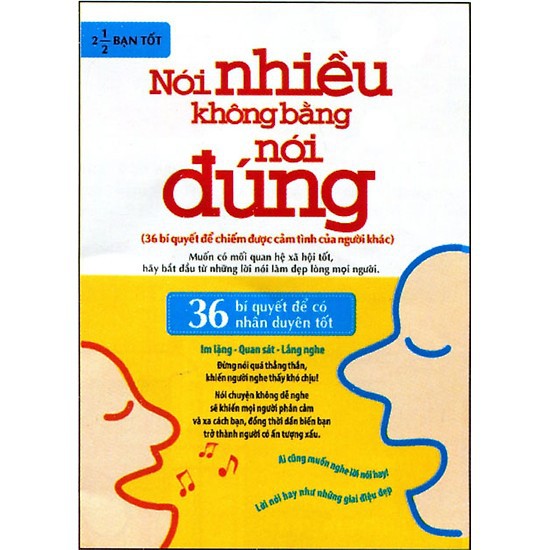 Sách – Nói Nhiều Không Bằng Nói Đúng Quyển sách cung cấp 36 bí quyết để chiếm được cảm tình của người khác. Muốn có mối quan hệ xã hội tốt, hãy bắt đầu từ những lời nói làm đẹp lòng mọi người. Trong giao tiếp, hãy luôn nhớ các nguyên tắc: Im lặng – Quan sát – Lắng nghe. Đừng nói quá thẳng thắn, khiến người nghe thấy khó chịu! Nói chuyện không dễ nghe sẽ khiến mọi người phản cảm và xa cách bạn, đồng thời dẫn đến việc bạn trở thành người có ấn tượng xấu. Lời nói hay như những giai điệu đẹp, ai cũng muốn nghe. ————— Công ty phát hành Minh Long Tác giả 2.1/2 Bạn Tốt Ngày xuất bản 05-2012 Kích thước 17 x 23 cm Nhà xuất bản Nhà Xuất Bản Dân Trí Loại bìa Bìa mềm Số trang 128