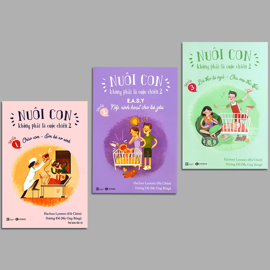 Nuôi Con Không Phải Là Cuộc Chiến 2 (Bộ 3 quyển) Trọn bộ 3 quyển bao gồm: 1. Chào con – Em bé sơ sinh Nút chờ chính là bài học về sự quan sát và kiên nhẫn từ cả phía cha mẹ và bé. Nút chờ là lúc cha mẹ quan sát và học “ngôn ngữ” của con, là lúc cha mẹ tìm ra câu hỏi đúng nhất cho từng tiếng khóc và từng cử chỉ của bé. Nút chờ là bài học quí giá về sự kiên nhẫn với cha mẹ và cả cho bé nữa. Trình tự sinh hoạt (routine) chính là việc tạo phản xạ có điều kiện cho bé, giúp bé nhận biết trƣớc được điều gì sẽ xảy ra với chính mình. Từ đó, nếp sống của gia đình có thể theo một chu kỳ nhất định, nhịp nhàng và tƣơng đối ít biến động và ít chao đảo hơn rất nhiều so với sinh hoạt ngẫu hứng. Chúng tôi sẽ bàn nhiều hơn về nút chờ và trình tự sinh hoạt, cũng như cách áp dụng những chìa khoá vàng này vào hoạt động hàng ngày của bé ở các chƣơng sau của cuốn sách. Sự chuyển biến từ sinh hoạt tuỳ tiện lộn tùng phèo sang nề nếp sẽ được trình bày qua rất nhiều ví dụ thực tế của các mẹ Việt đã và đang áp dụng hàng ngày. —— Công ty phát hành Thái Hà Tác giả Hachun Lyonnet, Hương Đỗ Nhà xuất bản Nhà xuất bản Lao Động Năm xuất bản 2020 Kích thước 15.5 x 24 cm Số trang 200 Hình thức Bìa Mềm 2. EASY – Nếp sinh hoạt cho bé yêu Rất nhiều cha mẹ đã nhầm lẫn hai khái niệm này với nhau và gộp chung chúng lại làm một và cho rằng áp dụng E.A.S.Y thật cứng nhắc. Tuy nhiên, chúng lại khác nhau hoàn E.A.S.Y không có gì to tát cả, nó bắt đầu từ khái niệm về qui luật/chu kì/nhịp sinh hoạt. E.A.S.Y giúp con và cả những người chăm sóc bé nắm bắt đƣợc những gì sẽ xảy ra trong ngày. Em bé có quyền đƣợc biết những gì xảy ra với mình. Những ngƣời chăm sóc bé cũng có thể đoán trƣớc đƣợc nhu cầu sắp tới của bé khi bé theo một chu kỳ sinh hoạt nhất định. Điều này giúp cho tất cả các thành viên trong gia đình – dù ở bất cứ cƣơng vị nào – đều có thể trở nên chủ động hợn, biết trƣớc đƣợc những điều gì sắp đến, mọi việc sẽ diễn ra trôi chảy hơn, ít các biến động bất ngờ hơn và từ đó việc chăm sóc trẻ cũng trở nên dễ dàng hơn. . Đây cũng chính là nền tảng xây dựng sự tin tưởng lẫn nhau giữa em bé và người chăm sóc, cũng nhƣ xây dựng mối liên kết giữa bé và gia đình. Ở phần 2 của bộ sách này, nhóm tác giả mời đọc giả cùng tìm hiểu về khái niệm E.A.S.Y và lý do vì sao nó lại thành công đến vậy; cách áp dụng E.A.S.Y cho từng lứa tuổi; những lịch sinh hoạt mẫu và những khúc mắc trong áp dụng E.A.S.Y khi con trải qua các giai đoạn phát triển thể chất và tinh thần. Chúng tôi cũng ghi nhận lại những trường hợp kinh điển và những kinh nghiệm quý báu của các bậc cha mẹ đi trƣớc truyền lại hay những giải pháp tổ chức cuộc sống khoa học khi mẹ quay trở lại đi làm… Xuyên suốt cuốn sách này, với mong muốn nhấn mạnh đến tính chất duy nhất và đặc biệt của từng em bé, chúng tôi cũng không quên đƣa ra những giải pháp đặc biệt để cha mẹ có thể tự thiết kế lịch sinh hoạt phù hợp với con và với điều kiện của từng gia đình. ——- Công ty phát hành Thái Hà Tác giả Hachun Lyonnet (Hà Chũn), Hương Đỗ (Mẹ Ong Bông) Nhà xuất bản Nhà xuất bản Lao Động Ngày xuất bản 2020 Kích thước 15.5 x 24 cm Loại bìa Bìa mềm Số trang 258 3. Bé thơ tự ngủ – Cha mẹ thư thái Trong những năm phát hành và theo sát các bậc cha mẹ Việt dạy con tự ngủ, chúng tôi đã chứng kiến sự thay đổi khả năng ngủ và việc đáp ứng tốt nhu cầu tự nhiên của một em bé biết tự ngủ so với chính em bé đó, khi con còn bị phụ thuộc vào ngƣời lớn để ru ẵm. Chúng tôi cũng nhận thấy không ít sự thay đổi tích cực trong cuộc sống gia đình, tinh thần của cha mẹ và ông bà khi con biết tự ngủ và ngủ đủ, và chính những điều đó là động lực để trong cuốn sách này, chúng tôi có quyết tâm để đi sâu nghiên cứu, ghi chép và truyền tải lại những phương pháp hướng dẫn tự ngủ cho bé thơ! Đồng hành cùng rất nhiều gia đình, chúng tôi không quên ghi nhận lại những khó khăn tâm lí của các bậc cha mẹ. Chúng tôi khẳng định, trầm cảm hậu sạn là có tồn tại và có thể gây hậu quả đến cuộc sống của gia đình. Chúng tôi hiểu vai trò tham gia của người cha có thể cân bằng cuộc sống rất nhiều khi nuôi con nhỏ. Hơn thế, khi soạn thảo bộ sách này, mong muốn tột cùng của chúng tôi là chia sẻ và xóa bớt những lo lắng cùng các gia đình, để các bậc phụ huynh sẽ trở thành những chuyên gia của nghệ thuật làm “cha mẹ thông thái”. Chúc các em có những giấc ngủ ngon trong những gia đình hạnh phúc. ~~~~~ Công ty phát hành Thái Hà Tác giả Hachun Lyonnet, Hương Đỗ Nhà xuất bản NXB Lao Động Năm xuất bản 2020 Kích thước 15.5 x 24 cm Số trang 275 trang/ 1 quyển Hình thức Bìa Mềm