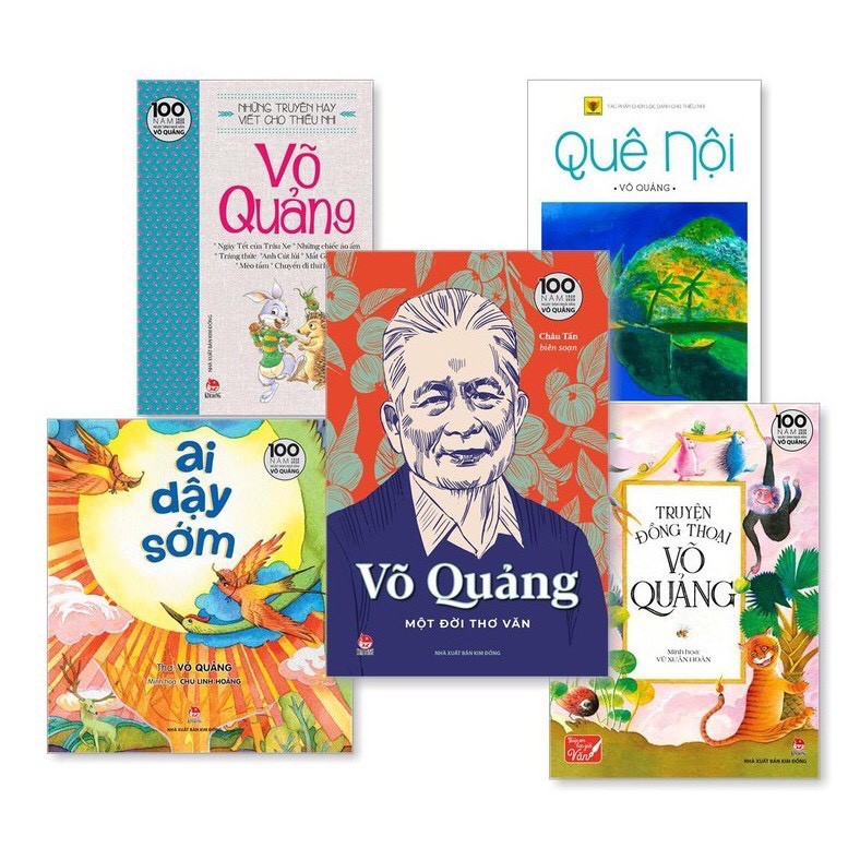 Tác giả Võ Quảng Loại bìa Mềm, Cứng Nhà xuất bản NXB Kim Đồng Năm xuất bản 2020 Công ty phát hành NXB Kim Đồng “Võ Quảng là một trong những tác giả được yêu mến của văn học Việt Nam nói chung và viết cho thiếu nhi nói riêng. Với Tảng sáng, Quê nội, Gà Mái Hoa, Anh Đom Đóm, Ai dậy sớm… những trang văn, câu thơ, truyện kể của ông đã trở nên thân thuộc, không chỉ với trẻ em mà là với nhiều lứa tuổi, nhiều thế hệ suốt mấy chục năm qua.” (Hội Nhà Văn Việt Nam) “Gắn bó với tuổi thơ, Võ Quảng cũng đã dành hết tâm hồn và tài năng cho những thiên đồng thoại nhỏ nhắn và xinh xắn, hồn nhiên và đậm đà sự sống vui, làm gắn bó được nhu cầu ham hiểu biết và hướng về điều thiện của các thế hệ trẻ thơ.” (Giáo sư Phong Lê) ***Bộ ấn phẩm kỉ niệm 100 năm ngày sinh nhà văn Võ Quảng tuyển chọn những tác phẩm tiêu biểu nhất của “Nhà văn của tuổi thơ – Nhà thơ của tuổi hoa”: – “Quê Nội” – tiểu thuyết mang tính tự truyện gắn với tên tuổi của nhà văn Võ Quảng, bối cảnh sau cách mạng Tháng Tám ở làng Hòa Phước bên dòng sông Thu Bồn. – Tập thơ “Ai dậy sớm” tuyển chọn những bài thơ được lưu nhớ nhất của nhà văn Võ Quảng viết cho thiếu nhi: “Ai dậy sớm”, “Mầm Non”, “Chị Chổi Tre”, “Anh Đom Đóm”, “Chú voi con”, “Anh Nắng sớm”, “Mời vào”… minh họa của họa sĩ Chu Linh Hoàng. – “Những truyện hay viết cho thiếu nhi – Võ Quảng”: tuyển chọn những truyện hay nhất viết cho thiếu nhi của nhà văn Võ Quảng: “Ngày Tết của trâu xe”, “Những chiếc áo ấm”, “Trăng thức”, “Anh cút lủi”, “Mắt Giếc đỏ hoe”…; – “Truyện đồng thoại Võ Quảng”: Những truyện đồng thoại hay nhất của nhà văn Võ Quảng với minh họa màu của họa sĩ Vũ Xuân Hoàn. – “Võ Quảng – Một đời thơ văn” – tuyển tập thơ, văn, phê bình, chân dung. Ngoài những bài thơ nổi tiếng của Võ Quảng, còn có truyện ngắn đầu tay “Cái lỗ cửa”, truyện vừa “Cái thăng”, tiểu thuyết “Kinh tuyến và vĩ tuyến”, những truyện cổ tích kể lại “Chuyện kể ở Đầm Vạc” (truyền thuyết thời Hùng Vương); cùng những bài viết về văn học thiếu nhi của nhà văn Võ Quảng trên cương vị là Tổng biên tập đầu tiên của NXB Kim Đồng và là một tác giả viết cho thiếu nhi; phần cuối là những bài bình giá của các nhà văn, nhà thơ, nhà nghiên cứu về tác phẩm Võ Quảng. Cảm ơn bạn đã ghé qua tiệm sách Minh Vân. Chúc một ngày tốt lành! # Bộ_ấn_Phẩm_Kỉ_Niệm_100_Năm_Ngày_Sinh_Nhà_Văn_Võ_Quảng