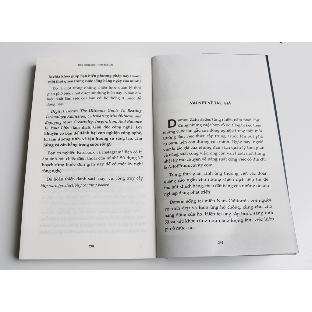 Công ty phát hành Công ty TNHH AN Phước Books VIệt Nam Tác giả: Damon Zahariades Ngày xuất bản 10-2020 Kích thước 13 x 20,5 cm Loại bìa Bìa mềm Số trang 249 Nhà Xuất Bản Phụ Nữ Việt Nam MÔ TẢ SẢN PHẨM THÓI QUEN NHỎ – THAY ĐỔI LỚN-– DAMON ZAHARIADES 10 bước thay đổi cuộc sống thông qua sức mạnh của những thói quen nhỏ. Cuốn sách sẽ chỉ cho bạn phương pháp tốt nhất để tạo ra những thói quen tích cực và hữu ích. Và quan trọng, nó sẽ giúp bạn biết cách để biến những thói quen này thành bản năng. Chúng ta được định nghĩa bởi những thói quen. Chúng xác định chúng ta là ai, chúng ta làm việc như thế nào, và chúng ta có đạt được những mục tiêu của mình. Chúng chỉ cho chúng ta cách tương tác với người khác và kết nối với thế giới xung quanh. Do vậy, việc tạo ra những thói quen tốt rất quan trọng nếu chúng ta hi vọng hướng tới cuộc sống khỏe mạnh, hạnh phúc và bổ ích. Bạn sẽ được học cách nạp lại năng lương, vực dậy tinh thần ngay thời điểm bạn muốn từ bỏ. Bao nhiêu lần bạn cam kết với bản thân bắt đầu luyện tập rồi lại bỏ dở sau vài ngày? Bao nhiêu lần bạn cảm thấy hừng hực khí thế và động lực ngút ngàn để quyết tâm thay đổi nhưng vẫn chọn bỏ cuộc dù đã tưởng tượng đến những thay đổi lành mạnh mà bạn có thể tạo ra trong cuộc sống của mình. Hãy nghĩ đến sự tự tin mà bạn trải nghiệm trong cuốn sách khi biết rằng những thay đổi lành mạnh vẫn sẽ tồn tại khi đứng trước những cám dỗ từ bỏ. Thật hấp dẫn phải không? Nếu phải thì bạn đã tìm đúng rồi đấy Chiến lược trong cuốn sách này sẽ hiệu quả đối với bất kỳ mô hình hành vi nào mà bạn có thể nghĩ đến. Và phần tuyệt nhất đó là tất cả sẽ đảm bảo các thói quen mới được hình thành sẽ gắn liền với bạn. Cuốn sách gồm 7 phần ngắn gọn. Mỗi nội dung là một phần quan trọng của cuốn sách. Từ đó sẽ chứng minh tầm quan trọng trong việc giúp đỡ bạn hình thành và duy trì những thói quen tốt. Phải nói rằng, tác giả đã tổ chức các tư liệu theo cách cho phép bạn có thể dễ dàng chuyển đến bất kỳ phần nào bạn muốn mọi lúc. Bạn sẽ nhận thấy mục lục rất chi tiết và hấp dẫn. Nó sẽ nhanh chóng cho bạn cái nhìn bao quát về cuốn hướng dẫn hành động này. Đúng như ý nghĩa tên gọi, mọi thành công đều bắt đầu từ những thay đổi nhỏ. Có thể, bạn đã từng cảm nhận được điều đó sau một vài lần thử thay đổi bản thân, bạn cũng đã từng thấy tự hào và vui sướng đấy chứ. Chỉ có điều, theo thời gian, bạn bị mất động lực và không lấy lại được. Nếu bạn vẫn đang loay hoay tìm kiếm một phương pháp giúp mình thay đổi, thì chúc mừng bạn vì đã tìm đến cuốn sách này. Chắc chắn bạn sẽ không cảm thấy uổng phí thời gian đọc nó vì giá trị mang lại vô cùng tuyệt vời. Còn chần chừ gì mà không tìm hiểu thôi!