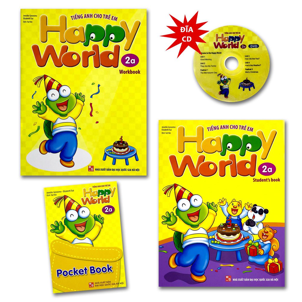 1.Tiếng Anh Cho Trẻ Em – Happy World – 2a (Bộ 2 quyển, 1 sổ tay, 1 đĩa DVD)