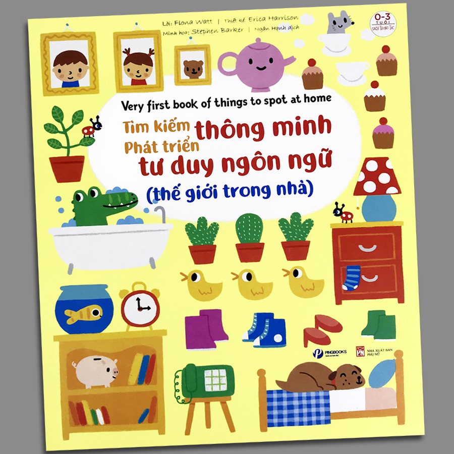 Tìm kiếm thông minh – phát triển tư duy ngôn ngữ (thế giới trong nhà) Giai đoạn 0-3 tuổi là giai đoạn vô cùng quan trọng cho sự phát triển tư duy ngôn ngữ ở trẻ nhỏ. Từ những tiếng ê a đầu đời cho tới khi cất lên gọi mẹ gọi ba là một quá trình tưởng như rất dài nhưng thực sự lại rất ngắn. Sự tiếp xúc từ những đồ vật thân thuộc xung quanh trong nhà cho tới giai đoạn tò mò về thế giới bên ngoài chính là quá trình phát triển ngôn ngữ của trẻ từ đơn giản tới phức tạp. Do vậy giai đoạn này các bậc cha mẹ cần chú ý để phát triển khả năng ngôn ngữ cho trẻ sớm và chuẩn xác. Bộ sách này chính là chiếc chìa khóa giúp các bậc cha mẹ mở cánh cửa ngôn ngữ đầu tiên cho trẻ. Bộ sách “TÌM KIẾM THÔNG MINH – PHÁT TRIỂN TƯ DUY NGÔN NGỮ” của Nhà xuất bản USBORNE được PINGBOOKS mua bản quyền và xuất bản tại Việt Nam. Vậy bộ sách này có gì đặc biệt? – “Tìm kiếm thông minh – phát triển tư duy ngôn ngữ” là bộ sách giúp bé tìm tòi và phát huy tối đa khả năng tư duy ngôn ngữ. – Tranh minh họa đơn giản, tươi sáng và bao gồm rất nhiều chi tiết để bé có thể tập trung quan sát và tìm kiếm trên mỗi trang sách. – Bé có thể nhận ra những con sao biển tại bãi biển, vỏ sò, cũng như các con robot, ô tô, những bông hoa và các con vật thân quen. – Đây sẽ là bộ sách hoàn hảo để mẹ chia sẻ với các bé và giúp các bé học từ mới, phát triển tư duy ngôn ngữ một cách hiệu quả cho các bé tập nói. – Với cuốn sách này, mẹ có thể đọc cho bé nghe, đố bé các câu hỏi đơn giản để dần dần hình thành phản xạ ngôn ngữ cho bé một cách hiệu quả. Sách thích hợp cho bé từ 6 tháng tuổi trở lên. ———— Nhà xuất bản: NXB Phụ Nữ Đơn vị phát hành: Pingbooks Tác giả: Nhiều tác giả Kích thước: 20.5 x 25 Số trang: 32 trang Loại bìa: Bìa mềm Năm phát hành 2. 2019