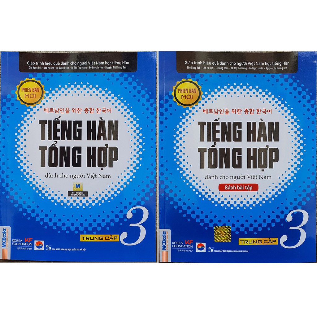 Sách – Combo 2 cuốn Tiếng Hàn Tổng Hợp Dành Cho Người Việt Nam – Trung Cấp 3 Phiên Bản Mới + Bài Tập: — Giáo trình tiếng Hàn tổng hợp sơ cấp dành cho người học tiếng Hàn trình độ trung cấp gồm 2 cuốn: 3 và 4. Sau khi hoàn thành các bài học ở cuốn Giáo trình tiếng Hàn tổng hợp dành cho người Việt Nam – trung cấp 3, người học sẽ tiếp tục nâng cao trình độ trung cấp của mình với cuốn Giáo trình tiếng Hàn tổng hợp – trung cấp 4. 2 cuốn Giáo trình tiếng Hàn tổng hợp gồm tổng cộng 30 bài khóa và bảng chữ cái. Nếu như học xong cuốn 1 với bảng chữ cái và 15 bài học đầu tiên, bạn sẽ tiếp tục học sang đến quyển 2 với 15 bài học ở cấp độ khó hơn một chút. Là cuốn sách được biên soạn hướng tới đối tượng là các bạn học sinh, sinh viên trên giảng đường nên sách được trình bày theo từng bài học chia thành nhiều phần như: Lý thuyết cơ bản gồm từ vựng và cấu trúc ngữ pháp; phần luyện tập theo 4 kỹ năng giao tiếp như: Nghe – Nói – Đọc – Viết, phần luyện phát âm, phần tìm hiểu văn hóa… Các chủ đề trong sách được sắp xếp một cách có hệ thống và liên quan chặt chẽ với nhau. Giáo trình tiếng Hàn tổng hợp được biên soạn kèm theo một cuốn sách bài tập hỗ trợ giúp người học ôn tập kỹ hơn và có thể luyện tập nâng cao trong những trường hợp cần thiết. Cấu trúc tổng thể của giáo trình được xây dựng theo các chủ đề; mỗi chủ đề được liên kết thống nhất với một hệ thống các từ vựng và cấu trúc ngữ pháp cơ bản, bài tập ứng dụng, kỹ năng và tìm hiểu văn hóa. Trong mỗi bài học, nội dung học được chia thành các phần như: luyện từ vựng, luyện ngữ pháp cơ bản, luyện tập kỹ năng nghe – nói – đọc – viết, luyện phát âm, tìm hiểu văn hóa của đất nước Hàn Quốc xinh đẹp. Và kết thúc mỗi bài đều có thêm bảng từ mới xuất hiện trong bài học. Cụ thể như sau: Phần mục tiêu bài học: Đưa ra những hình ảnh thể hiện một cách hàm súc nhất chủ đề của bài học, cuốn giáo trình sẽ đưa ra mục tiêu học tập cho từng kỹ năng và luyện tập ứng dụng, từ vựng,cấu trúc ngữ pháp, văn hóa phù hợp để tạo động cơ và định hướng mục tiêu học tập cho người học. Phần luyện từ vựng: Sách khoanh vùng, lựa chọn các từ vựng cần thiết, liên quan đến bài học mà người học cần nắm vững. Phần ngữ pháp cơ bản: Cấu trúc 3 phần: Giải thích ý nghĩa – kỹ năng – hình thái hoạt động và có ví dụ minh họa. Phần luyện nói được chia thành 3 bước: Làm quen – luyện tập – nâng cao và được thiết kế theo trình tự phù hợp. Phần luyện nghe được chia thành 3 phần: Làm quen – Luyện nghe – Nâng cao và đặt theo trình tự bố cục phù hợp. Phần cuối của sách, các tác giả đưa ra hệ thống từ mới được sắp xếp theo thứ tự của bảng chữ cái. Đây là những từ không xuất hiện trong phần ngữ pháp, từ vựng cơ bản; nhưng lại xuất hiện nhiều ở phần luyện tập của từng bài Công ty phát hành MCBooks Tác giả Nhiều Tác Giả Ngày xuất bản 06 – 2020 Kích thước 19 x 27 cm Nhà xuất bản Nhà Xuất Bản Đại Học Quốc Gia Hà Nội Loại bìa Bìa mềm Số trang: Sơ Cấp 1 Phiên Bản Mới 335 trang Sơ Cấp 1 Phiên Bản Mới 185 trang (Sách Bài Tập)