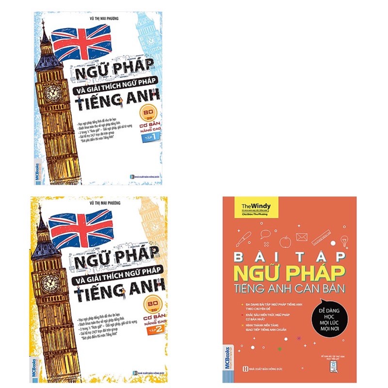 Sách – Trọn Bộ Ngữ Pháp Tiếng Anh Cho Người Mới Bắt Đầu ebook pdf review dowload tác giả The Windy, Danh Mục Sách Ngoại Ngữ Thương hiệu The Windy Ngôn ngữ Tiếng Việt Nhập khẩu/ trong nước Trong nước Kho hàng 99 . 1.Ngữ Pháp Và Giải Thích Ngữ Pháp Tiếng Anh Cơ Bản Và Nâng Cao – Tập 1 Công ty phát hành MCBooks Tác giả Vũ Thị Mai Phương Ngày xuất bản 12-2018 Kích thước 19 x 27 cm Nhà xuất bản Nhà Xuất Bản Hồng Đức Loại bìa Bìa mềm Số trang 653 Đặc điểm nổi bật của bộ sách: Kiến thức được trình bày chi tiết theo từng chuyên đề ngữ pháp tiếng Anh Nội dung được cập nhật theo hướng luyện thi tiếng Anh mới, bao gồm thi THPT và Thi các chứng chỉ tiếng Anh quốc tế. Trình bày rõ ràng, dễ học, dễ hiểu, dễ nhớ. Nhấn mạnh vào các phần ngữ pháp mang tính ứng dụng cao trong thi cử, giao tiếp. Với những đặc điểm trên, bộ sách sẽ phù hợp với mọi đối tượng có nhu cầu học tiếng Anh: từ học sinh THCS, học sinh THPT, sinh viên, người đi làm hay bất kì ai muốn thi lấy chứng chỉ tiếng Anh, muốn giao tiếp tốt bằng ngôn ngữ này. Cô hy vọng, với những ưu điểm nổi bật trên, cuốn sách sẽ giúp các em tự tin hơn để chinh phục các mục tiêu học tập của mình. Để viết cuốn sách này cô đã dành rất nhiều thời gian và tâm huyết. Tuy nhiên, trong quá trình biên soạn có thể có những sai sót. Cô rất mong nhận được những ý kiến đóng góp quý báu của các em để lần tái bản sau được hoàn thiện hơn. 2.Ngữ Pháp Và Giải Thích Ngữ Pháp Tiếng Anh Cơ Bản Và Nâng Cao – Tập 2 Công ty phát hành MCBooks Tác giả Vũ Thị Mai Phương Ngày xuất bản 12-2018 Kích thước 19 x 27 cm Nhà xuất bản Nhà Xuất Bản Hồng Đức Loại bìa Bìa mềm Số trang 484 GIỚI THIỆU SÁCH Cuốn sách ” Ngữ Pháp và giải thích Tiếng Anh” cơ bản và nâng cao tập 2, việc tiếp nhận và trao rồi, rèn luyện ngữ pháp tiếng anh cần cho mọi đối tượng muốn học ngôn ngữ này. Từ các em học sinh THPT, các em học sinh THCS, các bạn sinh viên, đến người đi làm, hay bất kì ai muốn có chứng chỉ quốc tế về tiếng anh. Hiểu rõ về những điều đó, cùng với nhiều năm kinh nghiệm trực tiếp giảng dạy tiếng anh cho mọi đối tượng, cô đã biên soạn bộ sách “Ngữ Pháp và giải thích ngữ pháp tiếng anh cơ bản và nâng cao – 80/20”. Bộ sách gồm 2 cuốn: tập 1 và 2, truyền tải toàn bộ hệ thống kiến thức ngữ pháp tiếng anh thông dụng được triển khai theo cấu trúc 80% cơ bản và 20% nâng cao. Tập 2 1. Các thì trong Tiếng Anh 2. Các loại câu 3. Câu diều kiện 4. Lời nói gián tiếp 5. Câu Bị động 6. Từ vựng học 3.Bài Tập Ngữ Pháp Tiếng Anh Căn Bản Công ty phát hành MCBOOKS Tác giả The Windy Nhà xuất bản Hồng Đức Năm xuất bản 2020 Số trang 275 Giới thiệu sách Khi bạn nghe – nói – đọc – viết tiếng Anh, nếu không chắc kiến thức về ngữ pháp thì bạn sẽ không thể hiểu hết ý của người nói. Vì trong tiếng Anh, từ ngữ sẽ chia theo thì (nói về thời gian), SỐ ít, SỐ nhiều… kèm các giới từ (chỉ vị trí, thời gian, nơi chốn,…) khá là phức tạp. Nếu ứng dụng nhầm kiến thức ngữ pháp tiếng Anh sẽ gây khó chịu và bối rối cho người nghe và người đọc. Do đó, ngữ pháp được coi là nền tảng của giao tiếp tiếng Anh. Ngữ pháp luôn là những cấu trúc câu khô khan, hình thức chia từ phức tạp nhưng nếu học và luyện tập đúng cách với bộ sách Ngữ pháp tiếng Anh căn bản và Bài tập ngữ pháp tiếng Anh căn bản, bạn sẽ thấy ngữ pháp dễ dàng hơn rất nhiều và ghi nhớ kiến thức một cách hiệu quả.