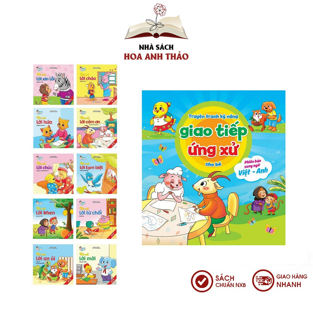 1. Sách – Truyện tranh kỹ năng giao tiếp ứng xử cho bé phiên bản song ngữ Việt Anh bộ 10 quyển -có File đọc tiếng Anh ebook
