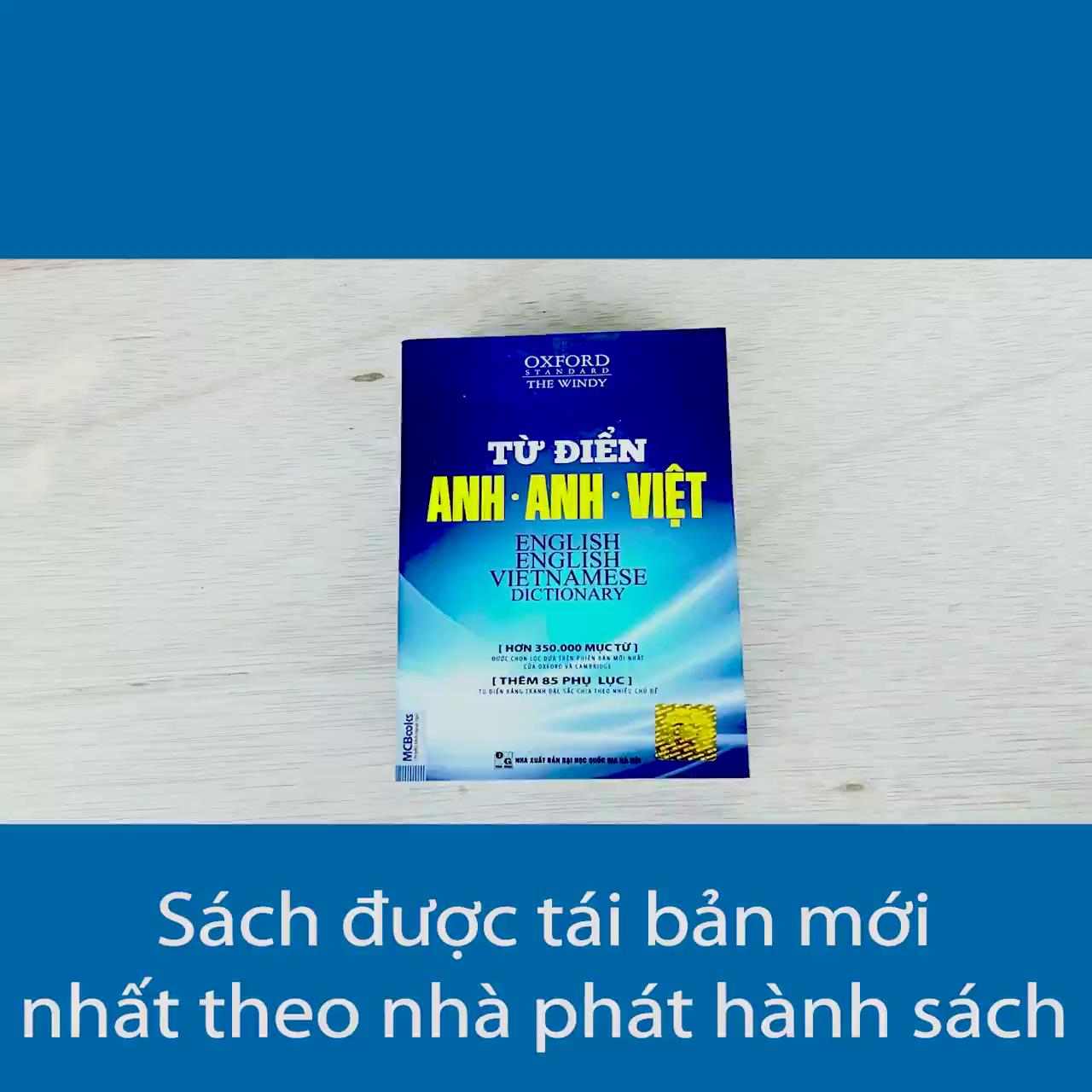 “Từ Điển Anh Anh Việt” là cuốn từ điển tổng hợp từ vựng tiếng Anh và giải thích nghĩa tiếng Việt bao gồm 350.000 từ vựng tiếng Anh được cập nhật phiên âm mới, chính xác nhất. Khi mua sách tại MCBooks: – Tặng ngay Bookmark để dễ dàng ghi nhớ phần đã học tới của sách. – Tặng ngay Voucher giảm giá 5% trong vòng 5 năm khi sử dụng sách của MCBooks. – Sách được bọc túi chống sốc và hộp giấy cẩn thận để tránh nhàu quăn sách. Từ điển Anh Anh Việt sẽ giúp bạn: – Cuốn từ điển bao gồm hơn 350.000 mục từ mới mẻ, cập nhật, những lời giải thích ngắn gọn mà rõ ràng, kèm với những ví dụ cụ thể sinh động – Phần giải thích và chuyển dịch tiếng Việt ở mỗi mục từ để đảm bảo chúng chính xác, sát nghĩa, trung thành với nguyên bản tiếng Anh. – Các kiến thức cơ bản trong tiếng anh cũng được trình bày và liệt kê một cách khoa học và đầy đủ nhất, cung cấp cho bạn đọc các kiến thức tổng quan và chuyên ngành tiếng anh hết sức chi tiết – Thêm 85 phụ lục – Từ điển bằng tranh đặc sắc chia theo nhiều chủ đề: Nông thôn – thành thị – vùng núi – động vật – các tòa nhà – sân vườn – nấu ăn, … rất tiện dụng, dễ tra cứu. – Phiên âm mới nhất, loại bỏ các từ cũ ít được dùng. Nội dung cơ bản và đối tượng sử dụng: – Cuốn từ điển này tập trung phần lớn vào đối tượng sinh viên, người đi làm nên có từ mới mẻ, cập nhật liên tục, những lời giải thích ngắn gọn mà rõ ràng, kèm với những ví dụ cụ thể mà sinh động, những mẫu cầu, kết cấu phổ dụng mà đa dạng của mỗi mục từ nhằm giúp người đọc biết cách sử dụng từ ngữ chính xác, phù hợp – Tham gia tu chỉnh, hiệu đính phiên bản Anh-Việt của cuốn từ điển này là nhiều giảng viên của Khoa Tiếng Anh, trường Đại học Ngoại ngữ thuộc Đại học Quốc gia Hà Nội để phân giải thích và chuyển dịch tiếng Việt ở mỗi mục tử là kiểm tra lại để đảm bảo chúng chính xác, sát nghĩa, trung thành với nguyên bản tiếng Anh mà không “Việt hóa” theo phép tắc, văn phong hoặc cách nói thông thường trong tiếng Việt. Thông tin sản phẩm – Tác giả: The Windy – Nhà xuất bản: NXB Đại học Quốc Gia Hà Nội – Công ty phát hành: MCBooks – Số trang: 1553 – Năm xuất bản: 2019 – Hình thức: Bìa mềm #sachtienganh, #sachtienganhcoban, #sachtienganhgiaotiep, #tudien, #anhviet, #sachtienganhhaynendoc, #tienganh, #tienganhgiaotiep, #sachhocngoaingu, #sachngoaivan, #sachgiaoduc, #nhasachonline, #tudienanhanhviet, #tudientienganh, #giaotieptienganh, #mcbooks, #sachhoctienganh, #nguphaptienganh