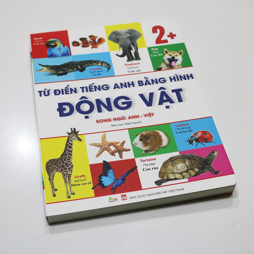 ——— Công ty phát hành Công ty TNHH An Phước Books Việt Nam Tác giả Nhâm Nguyễn Ngày xuất bản 01-2021 Kích thước 18.5 x 24 cm Nhà xuất bản NXB Phụ Nữ Việt Nam Loại bìa Bìa Cứng Số trang 35 trang ——————————— GIỚI THIỆU SÁCH Từ Điển Tiếng Anh Bằng Hình Ảnh Cho Bé – Dạy các từ vựng tiếng Anh thông qua hình ảnh con vật thực tế, gần gũi Trẻ em chỉ biết rất ít về mọi thứ xung quanh, do đó khi dạy, để kích thích sự ghi nhớ của trẻ thì phụ huynh nên dạy các từ vựng tiếng anh về các con vật gần gũi, có hình ảnh minh họa thực tế là tốt nhất. Điều này kích thích trực tiếp thị giác của trẻ, nên trẻ sẽ học một cách đầy hứng thú và ghi nhớ lâu nhất. Khi dạy trẻ bố mẹ nên cầm những bức hình tươi tắn, sống động về những con vật và hỏi “what’s this?”, bé sẽ thích thú và liên tưởng đến những tên các con vật từ đó bé sẽ nhớ được rất lâu. Từ điển bằng hình chủ đề động vật – giúp trẻ học từ vựng tiếng Anh Từ Điển Bằng Hình còn giúp các bé bổ sung kiến thức về cuộc sống xung quanh. Cuốn sách giới thiệu phương pháp giúp trẻ học nhanh, nhớ lâu từ vựng tiếng Anh Việc kết hợp hình ảnh minh hoạ cho các từ vựng tiếng Anh về chủ đề động vật sẽ giúp các bé nhớ từ mới dễ dàng hơn thông qua việc ghi nhớ bằng tranh ảnh minh họa. Đặc biệt các em nhỏ sẽ rất thích thú khi vừa được ngắm ảnh vừa học những từ tiếng Anh thú vị về những con vật thân thuộc.