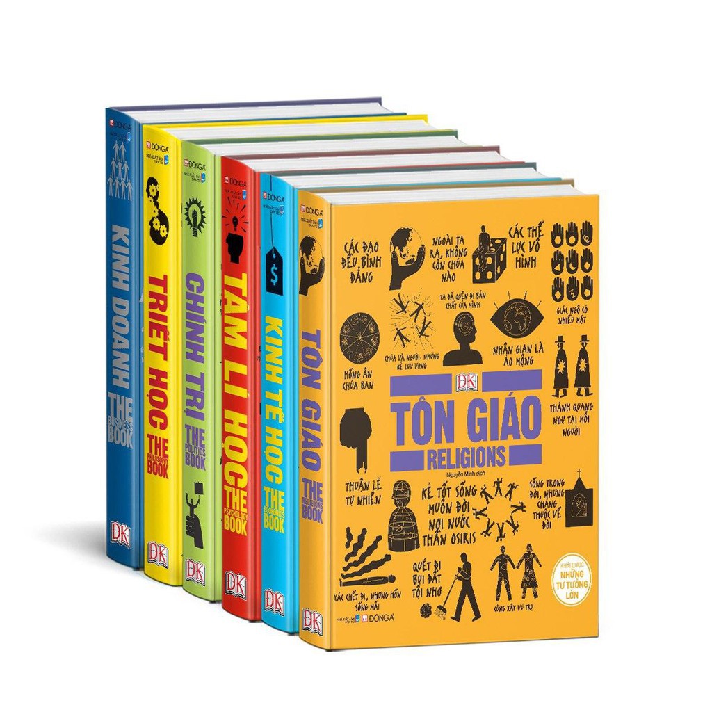 Sách – Tuyển tập bộ Khái Lược Những Tư Tưởng Lớn :Tâm lý học, kinh doanh, triết học, tôn giáo, chính trị.. (lẻ tuỳ chọn) ebook pdf review dowload tác giả , Danh Mục Sách Du Lịch Kho hàng 6 . Công ty phát hành: Đông A Tác giả: DK NXB: NXB Dân Trí Ngày phát hành: 2019 Loại bìa: Bìa cứng Số trang: 2112 Kích thước: 19.3 x 23.5 cm Tâm lí học – Khái lược những tư tưởng lớn Ta có thực sự là những cá nhân tự do với bản sắc riêng… hay tất cả chúng ta đều chỉ biết tuân phục số đông? Thiên tài là nhờ dưỡng dục hay tự nhiên? Vô thức điều khiển chúng ta như thế nào? Những câu hỏi như trên chính là tiền đề cho các công trình của nhiều tư tưởng gia và khoa học gia lớn của thế giới, trong một lĩnh vực giàu sức lôi cuốn, đó là tâm lí học. Với văn phong dễ hiểu và sáng sủa, Tâm lí học – Khái lược những tư tưởng lớn là tập hợp những bài viết ngắn gọn hàm súc giải thích rõ những điều khó hiểu, những sơ đồ giúp làm sáng tỏ những lí thuyết rối rắm, những trích dẫn dễ nhớ, cùng những minh họa dí dỏm giúp chúng ta chơi đùa với những kiến thức nền tảng về tâm lí học. Kinh doanh – Khái lược những tư tưởng lớn Làm thế nào để xây dựng thương hiệu thành công? Điều gì tạo nên một nhà lãnh đạo giỏi? Vì sao một số doanh nghiệp gặp thất bại trong khi số khác lại phát triển vượt bậc? Trong suốt chiều dài lịch sử, các chuyên gia về kinh doanh đã đúc kết những ý tưởng và giải pháp góp phần định hình thế giới kinh doanh và thương mại như ngày nay. Được viết bằng văn phong đơn giản, Kinh doanh – Khái lược những tư tưởng lớn mở ra những ý tưởng độc đáo, với cách giải thích ngắn gọn, súc tích kèm theo các biểu đồ dễ hiểu và hình minh họa dí dỏm, giúp bạn tiếp cận những kiến thức cốt lõi về kinh doanh và thị trường thế giới.