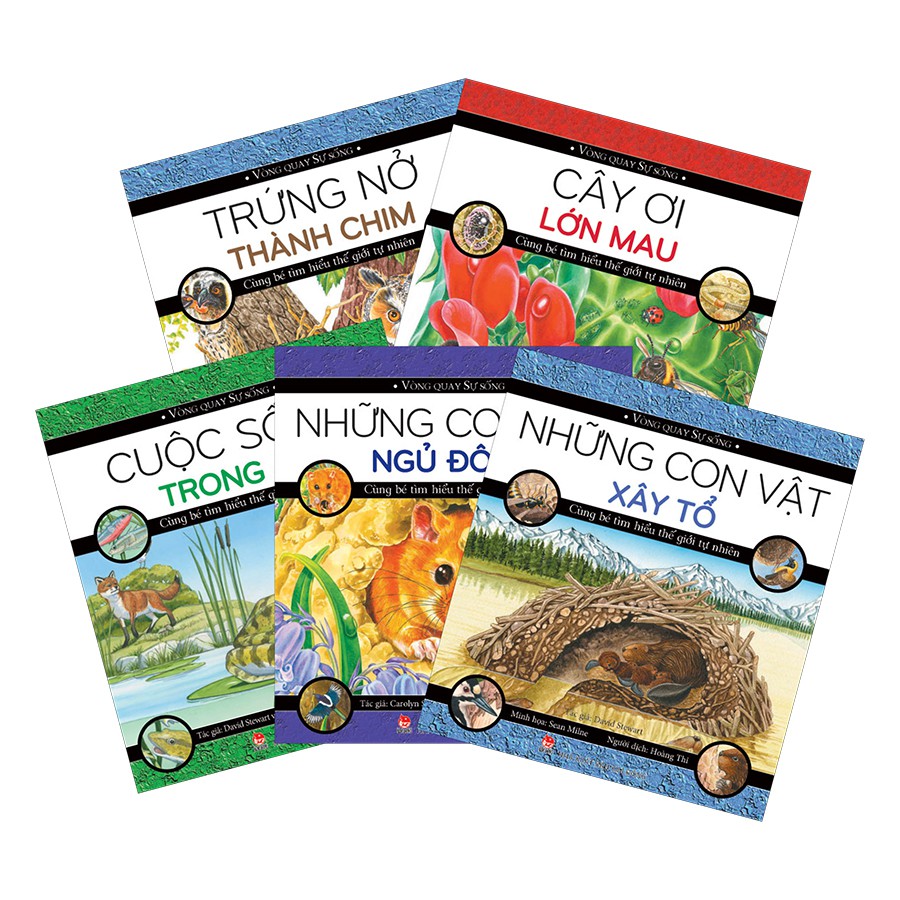 Công ty phát hành: Nhà Xuất Bản Kim Đồng Ngày xuất bản: 10-2017 Kích thước: 13 x 19 cm Loại bìa: Bìa mềm Nhà Xuất Bản Kim Đồng MÔ TẢ SẢN PHẨM: Combo Vòng Quay Sự Sống (Trọn Bộ 5 Cuốn) sẽ giúp bạn nhỏ tìm hiểu thế giới tự nhiên từ những điều thật giản dị và gần gũi. Như là cách ươm một hạt đậu và theo dõi quá trình lớn lên của nó. Như là quan sát cách loài sóc chuột bé nhỏ dự trữ thức ăn, làm tổ và cuộn mình ngủ đông. Như là cách xây tổ và ôm ấp con non trưởng thành của 5 loài động vật. Bạn nhỏ cũng có thể tìm hiểu quá trình sinh trưởng và phát triển từ trứng thành chim của loài cú tai dài. Có biết bao điều kì diệu từ thiên nhiên và sự sống được truyền tải qua những hình ảnh đẹp và sinh động, dưới ngòi bút tài hoa của họa sĩ Carolyn Scare đang đợi bạn nhỏ khám phá. Bộ sách gồm 5 cuốn: Vòng quay sự sống – Trứng nở thành chim Vòng quay sự sống – Cây ơi lớn mau Vòng quay sự sống – Cuộc sống trong ao Vòng quay sự sống – Những con vật ngủ đông Vòng quay sự sống – Những con vật xây tổ