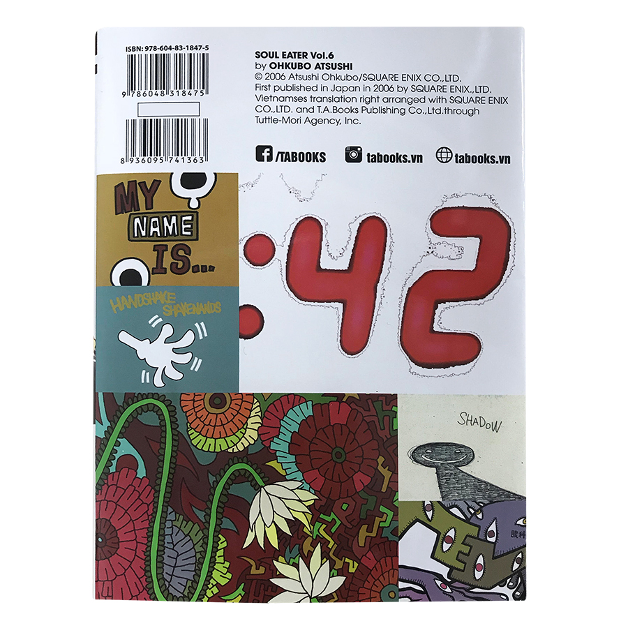 Sách Soul Eater (Tập 6) Tác giả: Ohkubo Atsushi, Công ty phát hành T.A Books Kích thước 13 x 18 cm Loại bìa Bìa mềm Số trang 160 SKU 8926013243796 Nhà xuất bản Nhà Xuất Bản Hải Phòng.