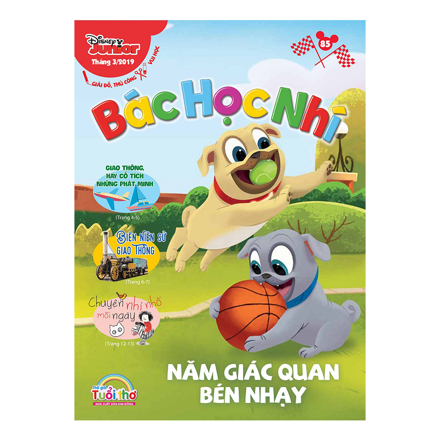 Tạp Chí Thế Giới Tuổi Thơ – Bác Học Nhí – Số 85 Tạp chí Bác Học Nhí phát hành định kì hằng tháng dành cho các bé mẫu giáo, với phần hình ảnh được mua bản quyền từ Disney, cùng nhiều nội dung hấp dẫn khác để bé và cả nhà vừa đọc vừa chơi. Số 85 phát hành tháng 3/2019 với chủ đề GIAO THÔNG mang đến nhiều kiến thức bổ ích và trò chơi vui nhộn kích thích trí tưởng tượng và sáng tạo của bé. – THƯ TRÊN ĐƯỜNG: Tìm hiểu những phát minh tiền đề và những sáng chế then chốt cho sự ra đời của những ô tô, xe máy, tàu thuyền… – TỪ ĐIỂN ĐẦU TIÊN: Cùng điểm lại những dấu mốc quan trọng trong lịch sử giao thông và ngắm nhìn những phương tiện giao thông thuở sơ khai. – NHẬT KÍ: Gợi ý để bé thiết kế được một phương tiện giao thông độc đáo, vừa an toàn cho người sử dụng lại vừa thân thiện với môi trường. – TRIỂN LÃM NHÍ: Mời bé tận hưởng không khí vui tươi, náo nhiệt của đường phố qua các tác phẩm thi vẽ ĐƯỜNG PHỐ TẬP NẬP của các độc giả nhí. – THƯ VIỆN: Giới thiệu những cuốn sách sẽ giúp bé biết thêm nhiều điều về giao thông, hiểu được vai trò của ô tô, xe máy trong cuộc sống, trầm trồ trước trí tưởng tượng và óc sáng tạo vô bờ bến của con người. Ngoài ra, Tạp chí còn có các trang truyện tranh và trò chơi, với nhân vật hoạt hình Disney quen thuộc như Đội vệ binh Sư Tử, Các bé Rối Tay, Bác sĩ McStuffins…