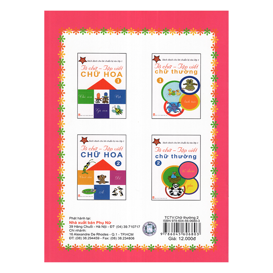 Sách Tô Chữ Tập Viết Thường (Tập 2) , Công ty phát hành Phụ Nữ Ngày xuất bản 01-2018 Kích thước 19 x 26 cm Loại bìa Bìa mềm Số trang 16 SKU 9598566179199 Nhà xuất bản Nhà Xuất Bản Phụ Nữ.