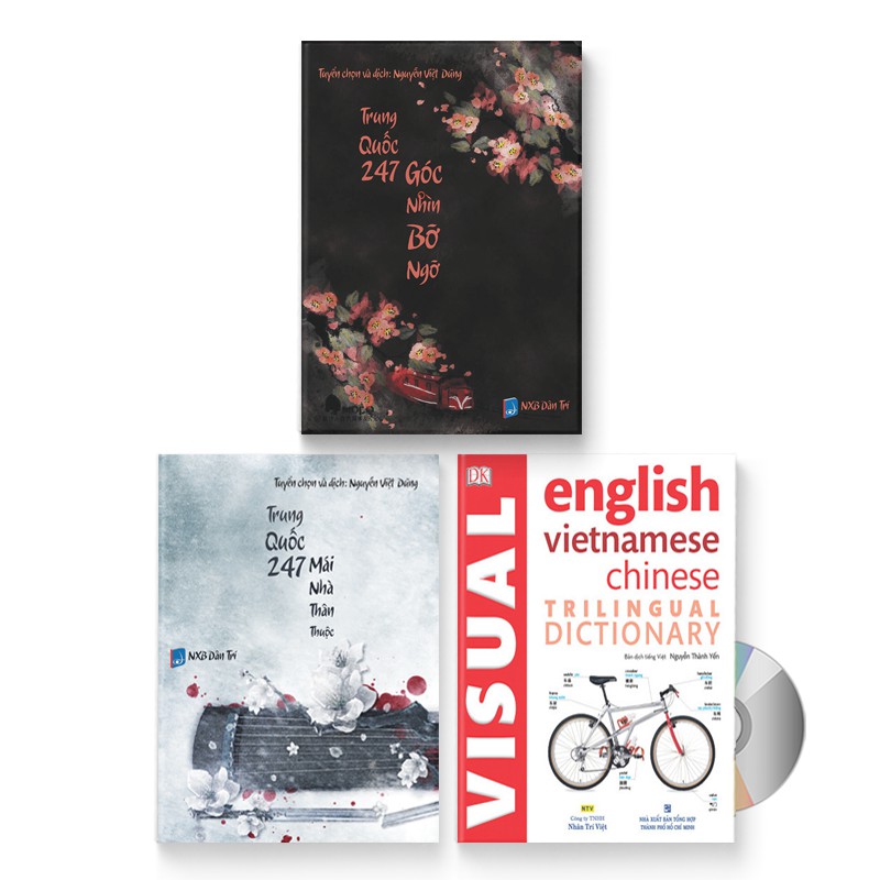 Sách – Combo: Trung Quốc 247 Mái Nhà + Trung Quốc 247 Góc Nhìn + Visual English Vietnamese Chinese Trilingual Dictionary Trung Quốc 247 – Góc nhìn Bỡ Ngỡ Nội dung sách: Các bài viết về con người, văn hoá Trung Hoa Tác giả: Nguyễn Việt Dũng Số trang: 350 Ngày xuất bản: 2018 Nhà Xuất Bản: Dân Trí Giá bìa: 350,000 VNĐ Trung Quốc 247 – Mái nhà thân thuộc Nội dung sách: Gồm các bài viết về con người, văn hoá Trung Hoa Tác giả: Nguyễn Việt Dũng Số trang: 350 Ngày xuất bản: 2018 Nhà Xuất Bản: Dân Trí Giá bìa: 350,000 VNĐ Visual English Vietnamese Chinese Trilingual Dictionary Nội dung sách: Các bài viết về hình ảnh Tam ngữ Trung Anh Việt Tác giả: Nguyễn Thành Yến Số trang: 364 Ngày xuất bản: 01/11/2017 Nhà xuất bản: Dân Trí Giá bìa: 320,000 VNĐ