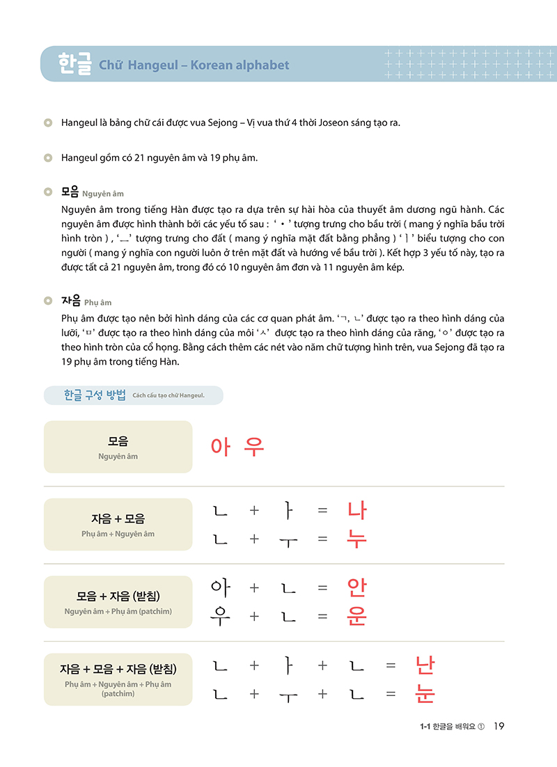 Không giống với ngôn ngữ tiếng Anh chúng ta được làm quen từ khi còn nhỏ, bộ môn tiếng Hàn hầu hết được tiếp cận khi chúng ta đã lớn. Do đó, quá trình này đòi hỏi chúng ta phải tập trung cao độ và có phương pháp học tối ưu nhất để bắt kịp tiến độ học tập. Nếu bạn đã từng băn khoăn không tìm được phương pháp học đúng đắn hay chỉ đơn giản là không chọn được giáo trình ôn luyện tiếng Hàn cho người mới bắt đầu trong vô vàn sách ngoại ngữ trên thị trường, cuốn sách cuốn sáchVitamin tiếng Hàn đem đến cho bạn một sự tổng hợp từ cơ bản đến nâng cao về tiếng Hàn cùng chu trình học thực sự hấp dẫn. Với cuốn sách Vitamin tiếng Hàn, bạn sẽ học như thế nào? Cuốn sách bao gồm 5 chương đi từ những kiến thức căn bản trong tiếng Hàn đến những kỹ năng trong giao tiếp tiếng Hàn thông dụng, được trình bày cụ thể như sau: 1. Chữ Hangeul Hiểu được nguyên lý cấu thành nguyên âm và phụ âm. Làm quen với các từ vựng cơ bản và chữ viết thông qua luyện nghe và viết. 2. Chủ đề và tiêu đề chương Đưa ra các chủ đề sẽ luyện tập ở các chương và thông qua các đề mục của các bài theo chủ đề người đọc có thể đoán được nội dung sẽ học. 3. Mục tiêu học tập và mở đầu mỗi chương Dẫn nhập các nội dung từ vựng, kỹ năng, ngữ pháp ngay ở phần mở đầu mỗi chương giúp người học nhận thức được mục tiêu bài học. Thông qua câu hỏi và các bức tranh, người học có thể đoán được các tình huống và ý nghĩa của mẫu câu theo chủ đề. 4. Từ vựng Từ vựng được tổng hợp theo các chủ đề bằng cách cung cấp các tranh, ảnh để người học đoán nghĩa. 5. Ngữ pháp và luyện tập ngữ pháp Mỗi bài bao gồm ba cấu trúc ngữ pháp và mẫu câu kèm theo các ví dụ, hội thoại, giải thích giúp người học hiểu sự thay đổi hình thái và ý nghĩa các ngữ pháp. Thông qua các hội thoại tình huống, người học có thể nâng cao khả năng sử dụng ngữ pháp của mình. 6. Hội thoại Các hội thoại theo ngữ pháp và các từ vựng chủ đề giúp người học ứng dụng các kiến thức lý thuyết vào luyện tập các kỹ năng hội thoại trong tiếng Hàn. 7. Hoạt động theo chủ đề Đưa ra các hoạt động theo bốn kỹ năng của ngôn ngữ để người học có thể vận dụng các ngữ pháp đã học. Các hoạt động như “nghe/viết”, “đọc/nói” được soạn thảo dưới hình thức đa dạng theo chủ đề 8. Tổng hợp Người học có thể tự kiểm tra ba nội dung đã học của mỗi chương thông qua phần Tổng hợp. Ngoài ra, người học có thể kiểm tra lại phần từ vựng và ngữ pháp đã học và luyện tập thêm thông qua các bài tập theo từng kỹ năng dưới dạng đề thi TOPIK. 9. Bài tập Bài tập là phần giúp bạn học ứng dụng linh hoạt từ vựng và ngữ pháp trong việc luyện tập nâng cao khả năng giao tiếp Tiếng Hàn một cách trôi chảy. 10. Văn hóa Điểm đặc biệt là cuốn sách còn bổ sung những nội dung văn hóa Hàn Quốc liên quan đến chủ đề của chương bằng tranh ảnh kèm theo các chú thích ngắn gọn giúp người học tích lũy thêm những kiến thức văn hóa bổ ích về Hàn Quốc. Với mục đích giúp người đọc có thể dễ dàng nắm bắt những kỹ năng cần thiết trong giao tiếp tiếng Hàn, cuốn sách Vitamin tiếng Hàn sẽ là loại vitamin bổ ích cung cấp nguồn năng lượng cho bạn học ngay từ khi mới bắt đầu.