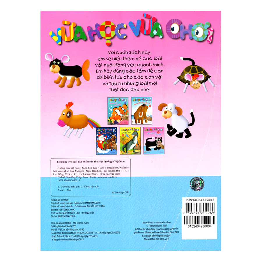 Sách Vừa Học Vừa Chơi: Những Con Vật Nuôi – Sách Bóc Dán (Tái Bản 2018) , Công ty phát hành Nhà Xuất Bản Kim Đồng Ngày xuất bản 08-2018 Kích thước 14.5 x 20.5 Loại bìa Bìa mềm Số trang 20 SKU 6449416757964.